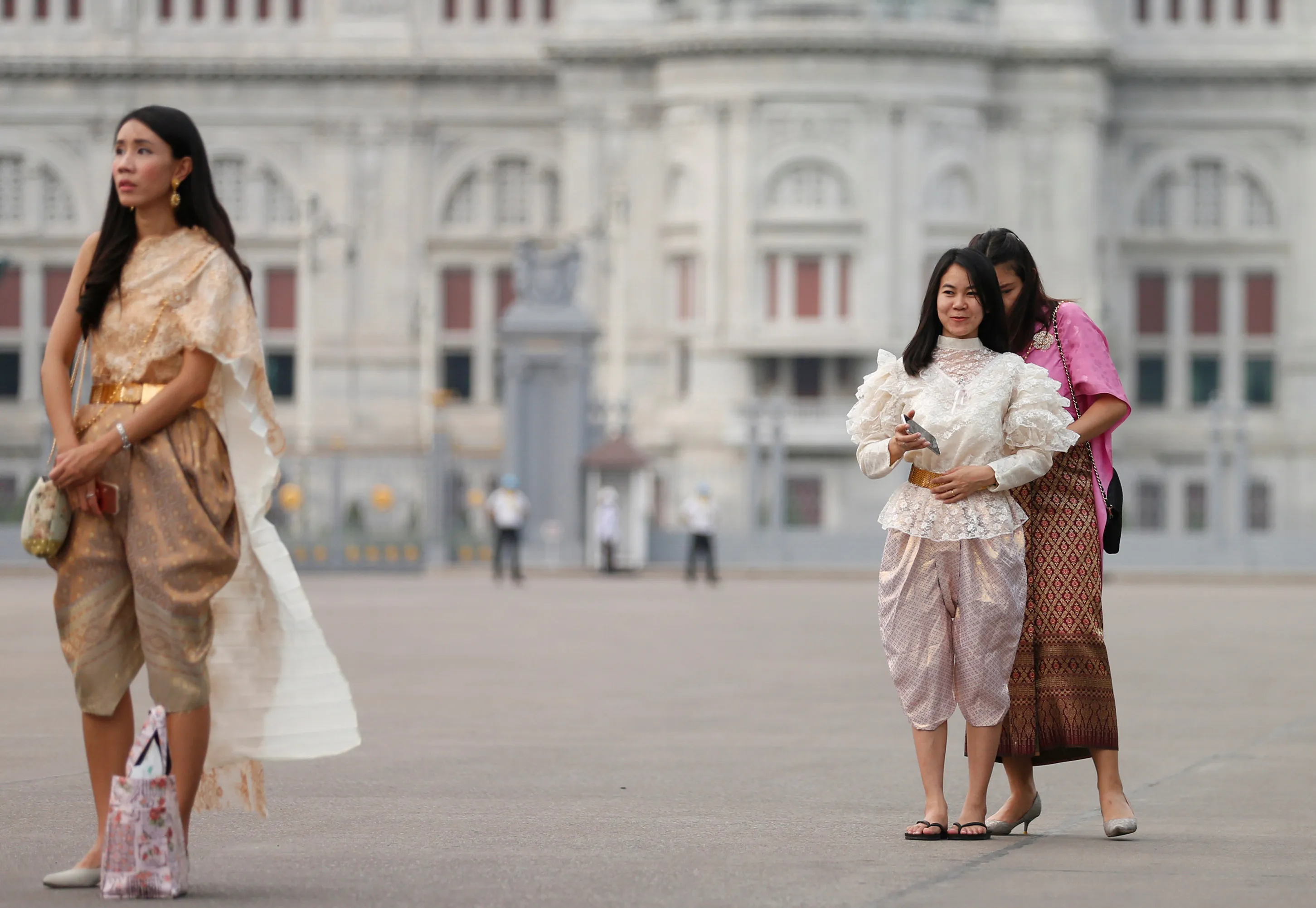 People dressed in traditional Thai costumes walk at the Royal Plaza, as interest for historical clothing rises within the country, in Bangkok, Thailand April 6, 2018. (Photo by Soe Zeya Tun/Reuters)
