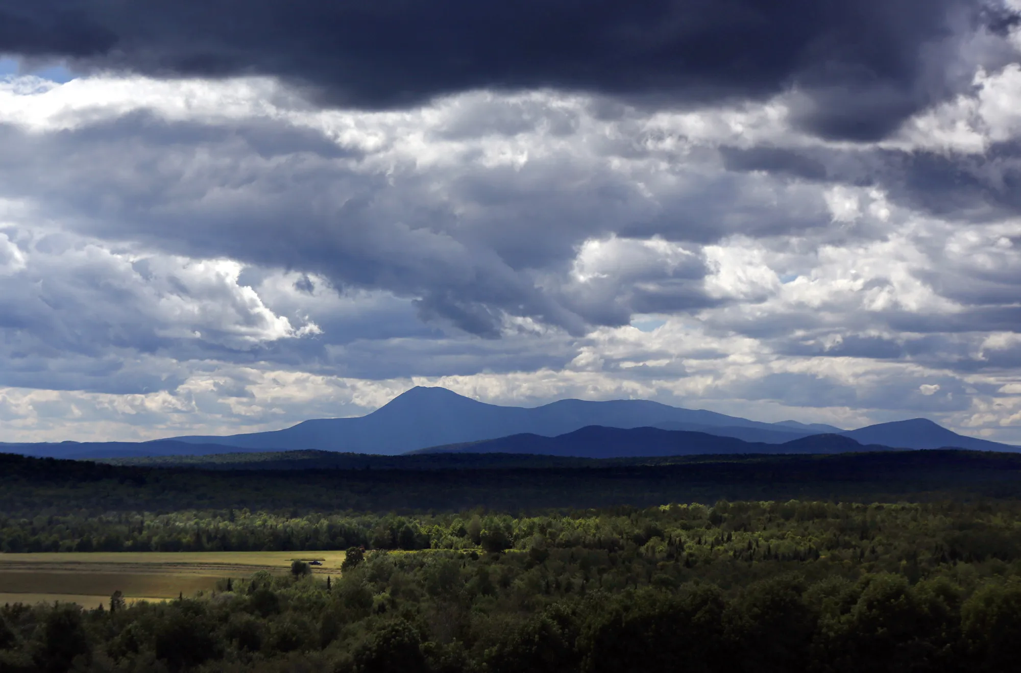 In this Wednesday, August 9, 2017 photo unsettled clouds fill the sky over Mount Katahdin in this view from Patten, Maine. Interior Secretary Ryan Zinke wants to retain the newly created Katahdin Woods and Waters National Monument in northern Maine, but said he might recommend adjustments to the White House on Thursday, Aug. 24, 2017. (Photo by Robert F. Bukaty/AP Photo)