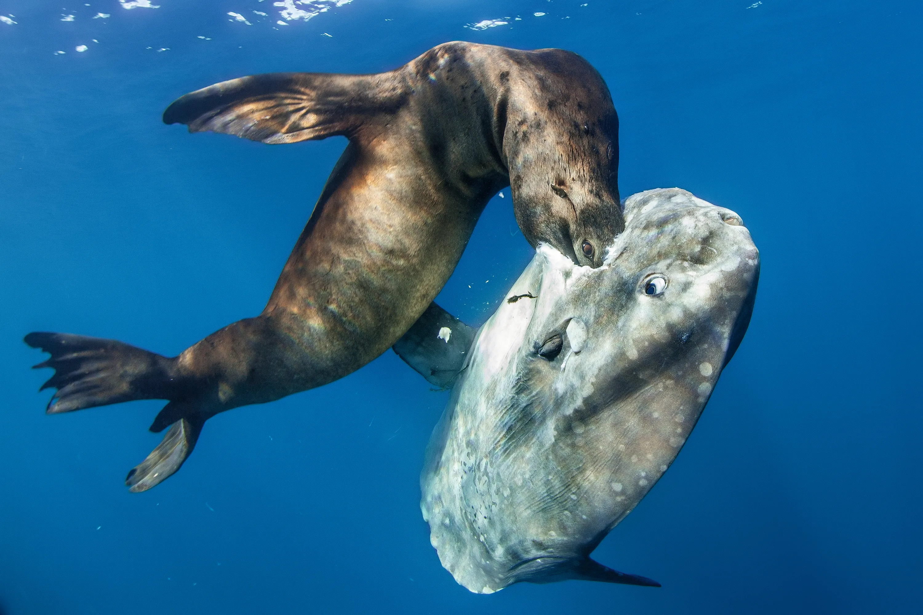 Giant killer by Ralph Pace. “If a fish can express emotion with its eyes, this ocean sunfish surely can. The youngster was desperate to dive, and the California sea lion was equally determined that it shouldn’t. The resulting thrashing at the surface attracted seabirds, which in turn brought the photographer to the scene, over Nine Mile Bank, way off the coast of California. ... This photograph was taken in 2015, when the extreme El Niño event meant much of the sea lions’ usual fish prey had moved north to cooler waters, making the sunfish a prize worth struggling for”. (Photo by Ralph Pace/Unforgettable Underwater Photography/NHM)