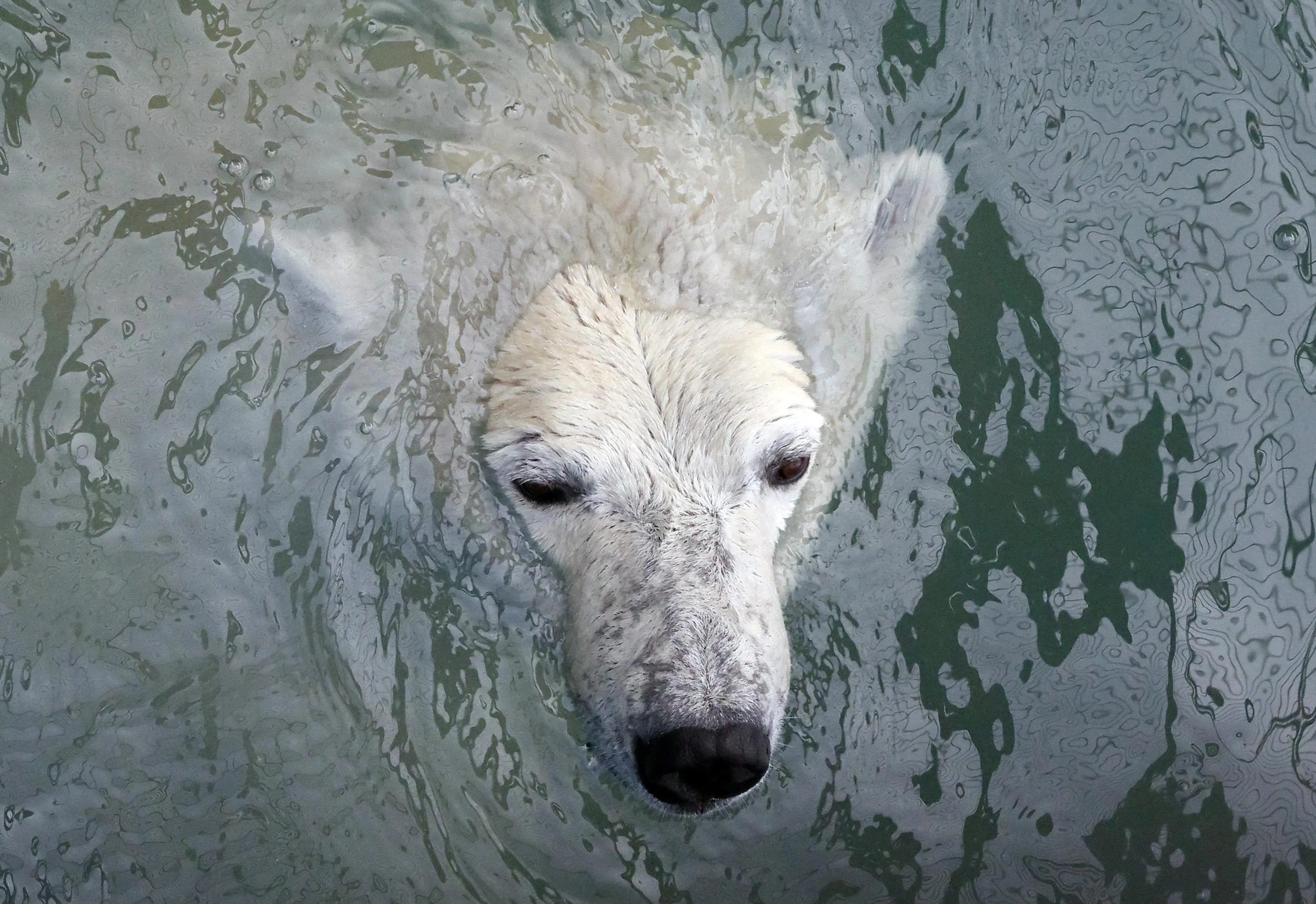 Aurora, an eight-year-old female polar bear, swims in a pool which was recently filled with water after the winter season, at the Royev Ruchey zoo in the suburb of Krasnoyarsk, Russia April 16, 2018. (Photo by Ilya Naymushin/Reuters)