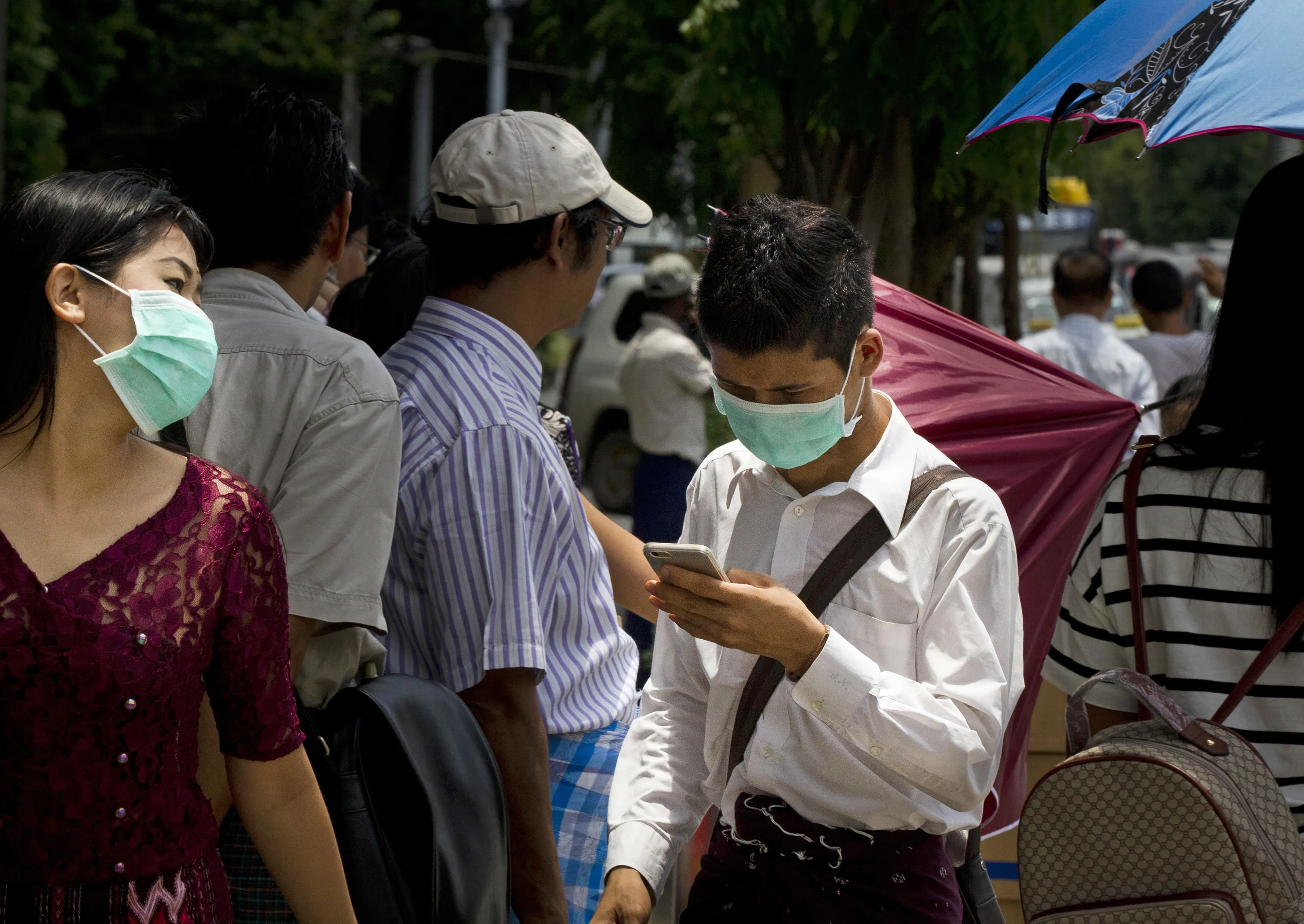 People wear masks to protect themselves against the swine flu on a main street, Tuesday, July 25, 2017, in Yangon, Myanmar. (Photo by Aung Shine Oo/AP Photo)