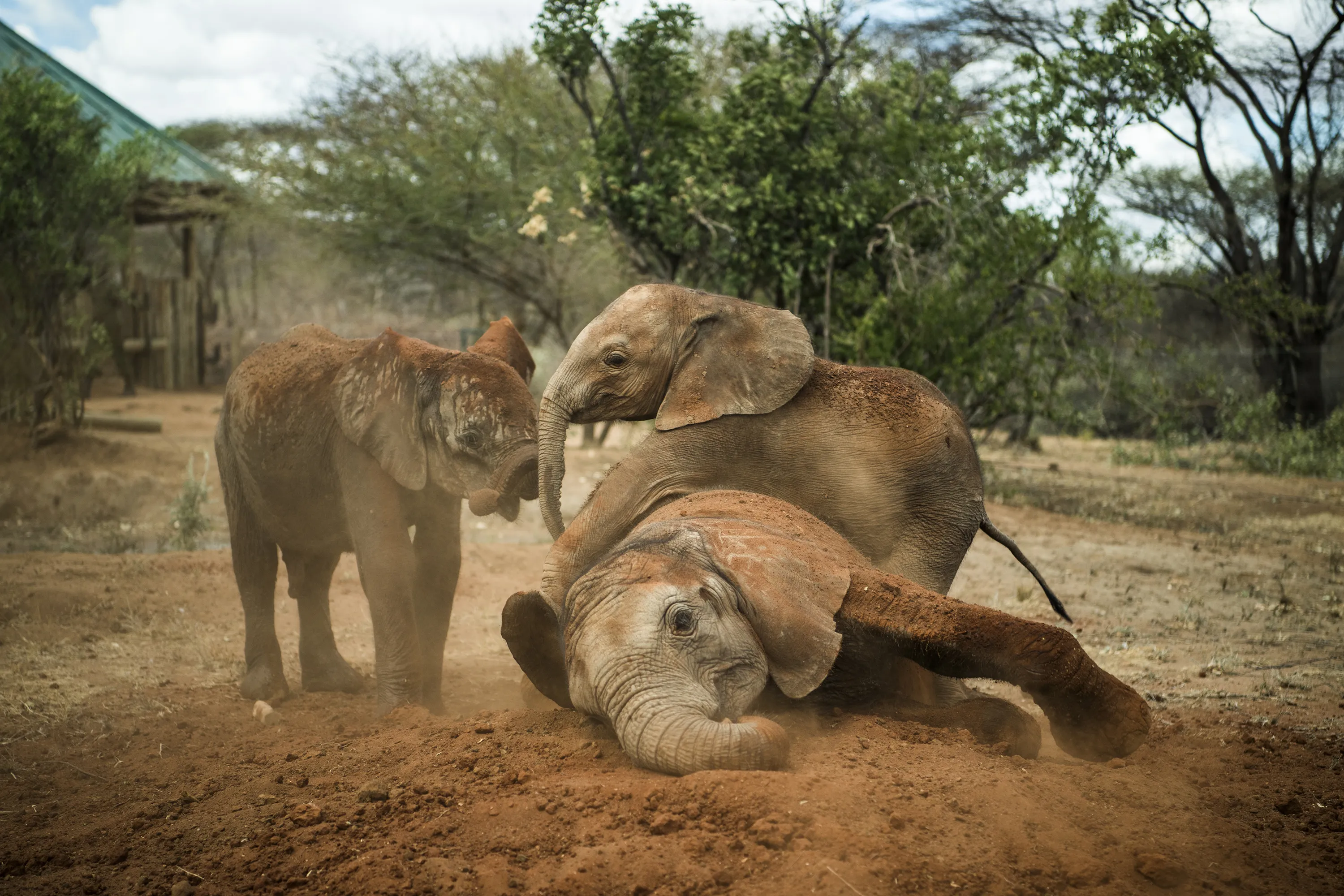 Orphaned elephant calves play at the community-owned Reteti Elephant Sanctuary in northern Kenya. (Photo by Ami Vitale/National Geographic)