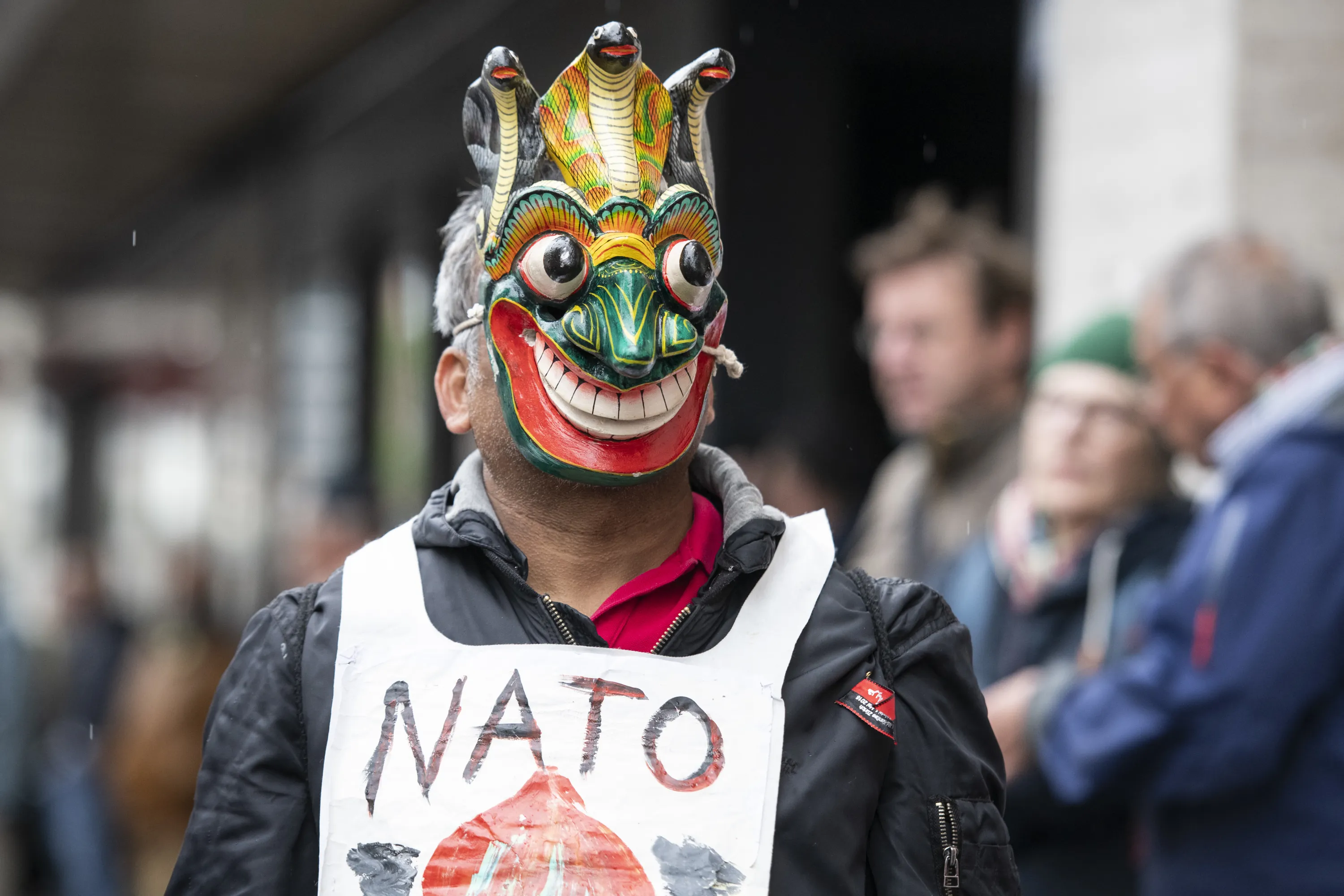 A disguised protestor attends a rally to mark the International Labor Day, in Zurich, Switzerland, on May 1, 2018. (Photo by Patrick Huerlimann/Keystone via AP Photo)