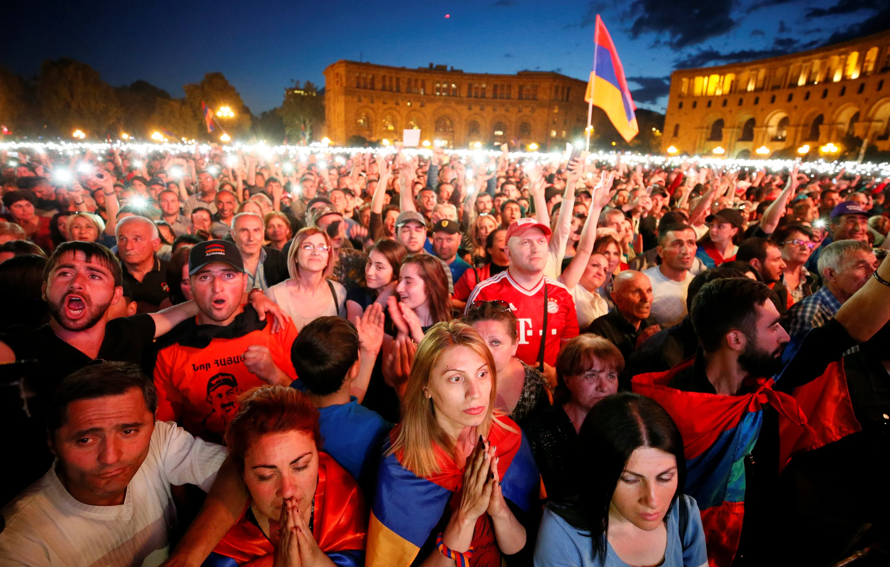 Supporters of Armenian opposition leader Nikol Pashinyan react, after his bid to be interim prime minister was blocked by the parliament, during a rally in central Yerevan, Armenia, May 1, 2018. (Photo by Gleb Garanich/Reuters)