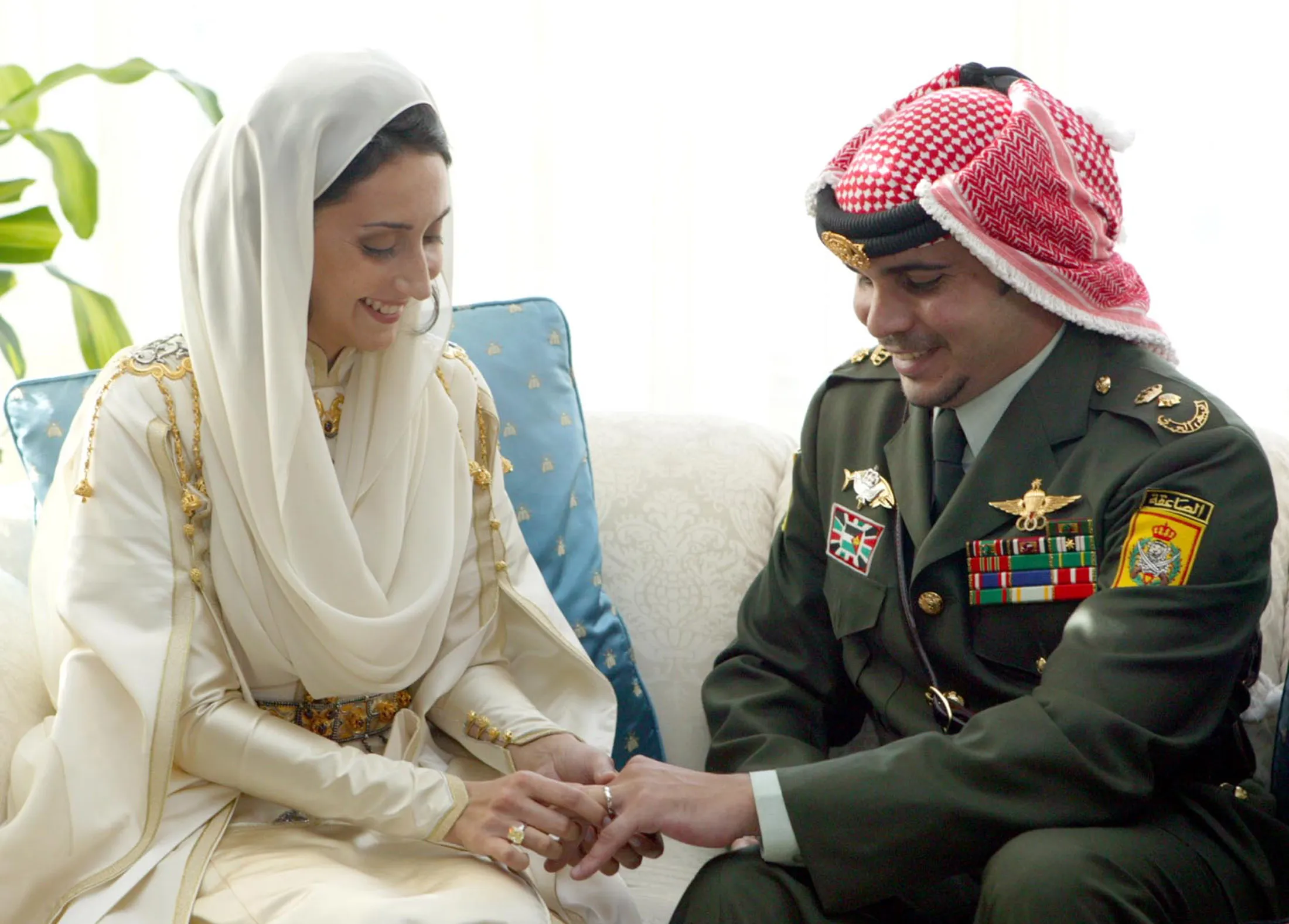 Jordan's Prince Ali, the half brother of the Jordanian monarch King Abdullah sits next to his bride Reem Ibrahimi, the daughter of U.N.'s Akhdar al-Ibrahimi, during a private royal family wedding held at the Royal Palace in Amman, September 7, 2004. (Photo by Yousef Allan/Reuters)