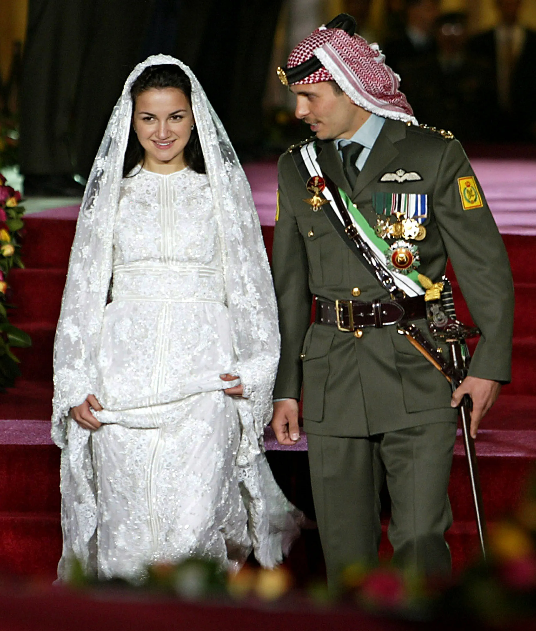 Jordan's Crown Prince Hamzeh bin al Hussein walks with his bride Princess Noor at their wedding at Zahran Palace in Amman, May 27, 2004. (Photo by Ali Jarekji/Reuters)