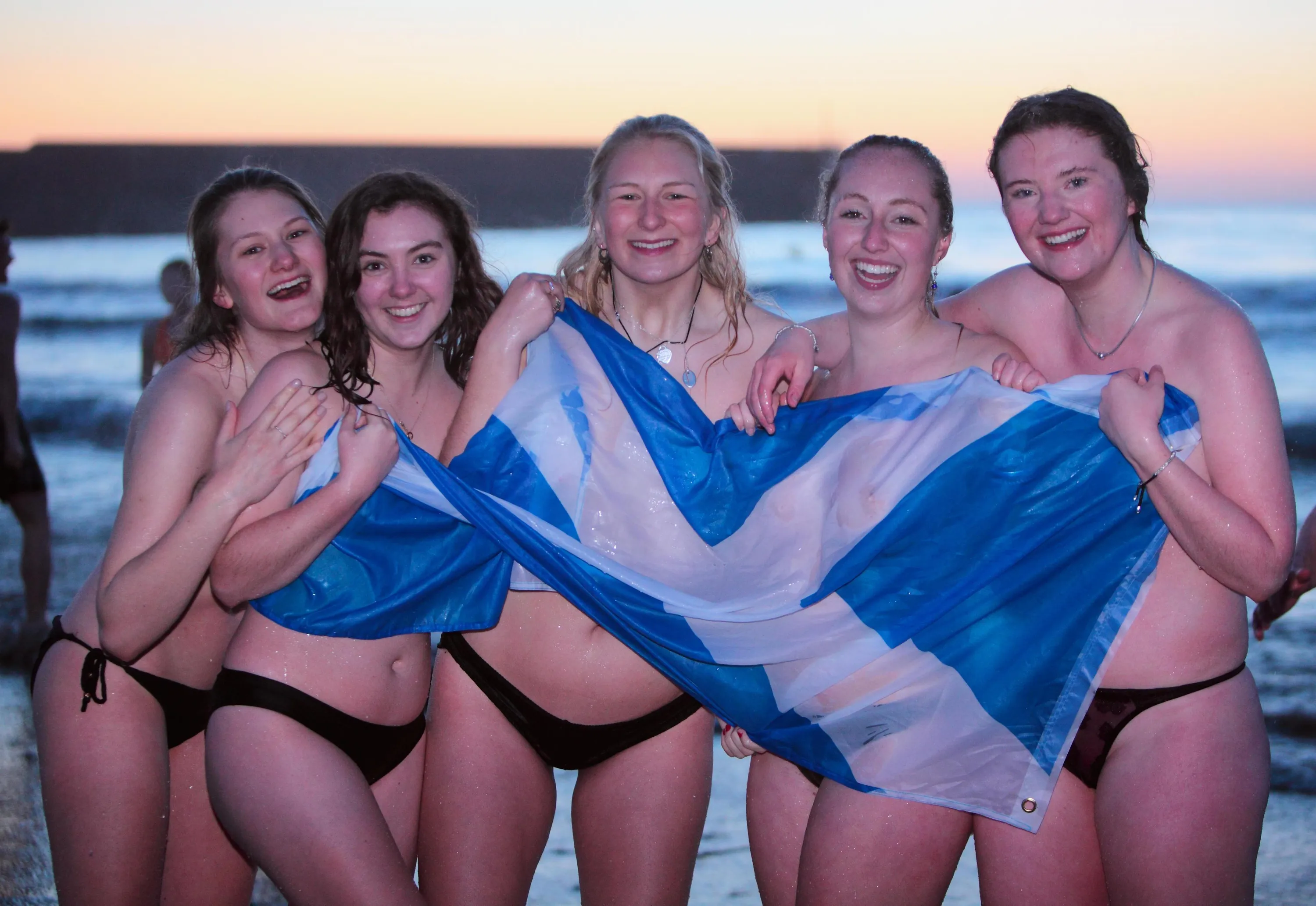 Students from the University of St Andrews jump into The North Sea, as a good luck tradition before exams start on the East Sands in St Andrews, Fife, Scotland on May 1, 2018. (Photo by Derek Allan/Alamy Live News)