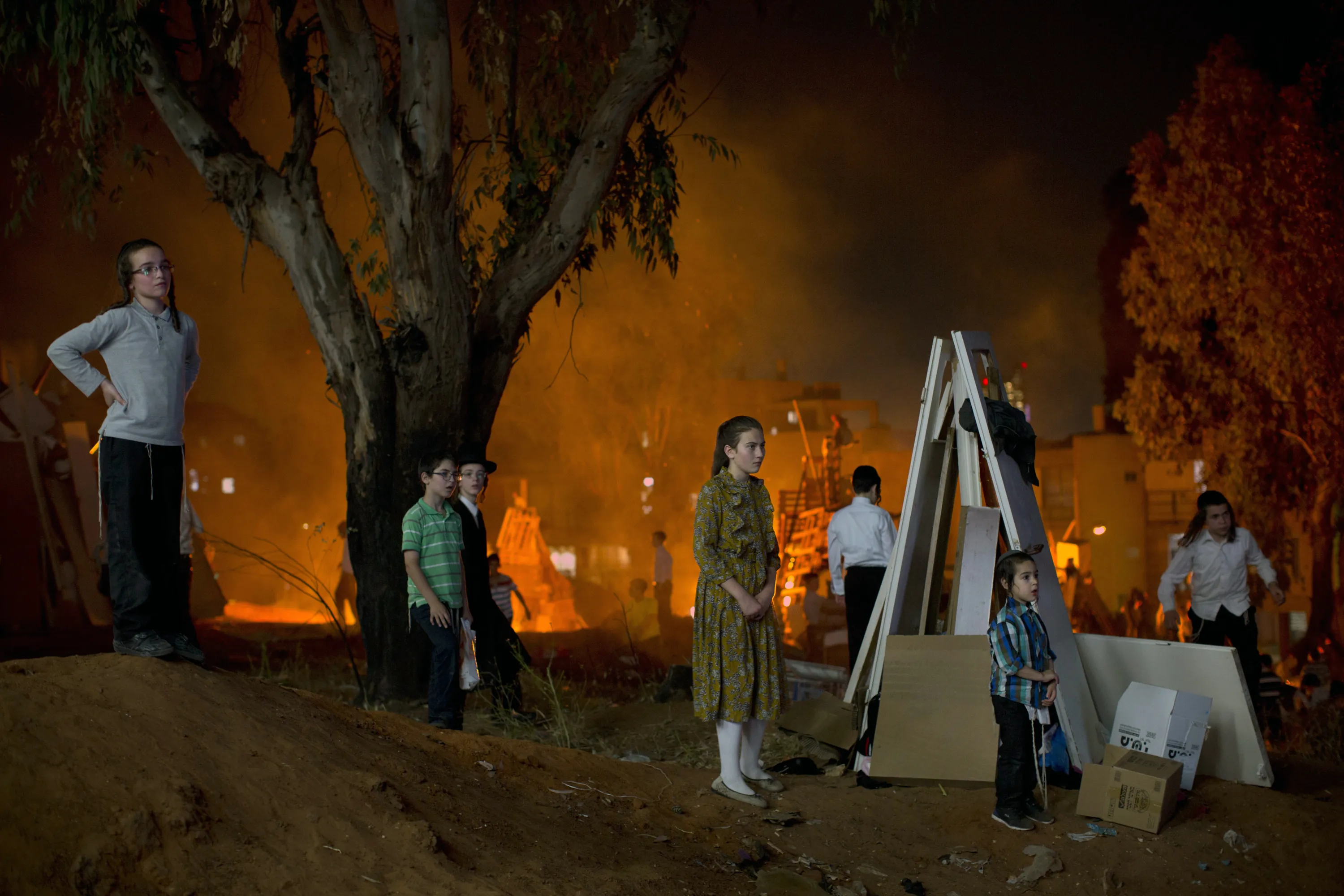 Ultra-Orthodox Jews stand next to bonfires during the Jewish holiday of Lag Ba'Omer in Bnei Brak, Israel, Wednesday, May 2, 2018. The holiday marks the end of a plague said to have decimated Jews during the Roman times. (Photo by Oded Balilty/AP Photo)
