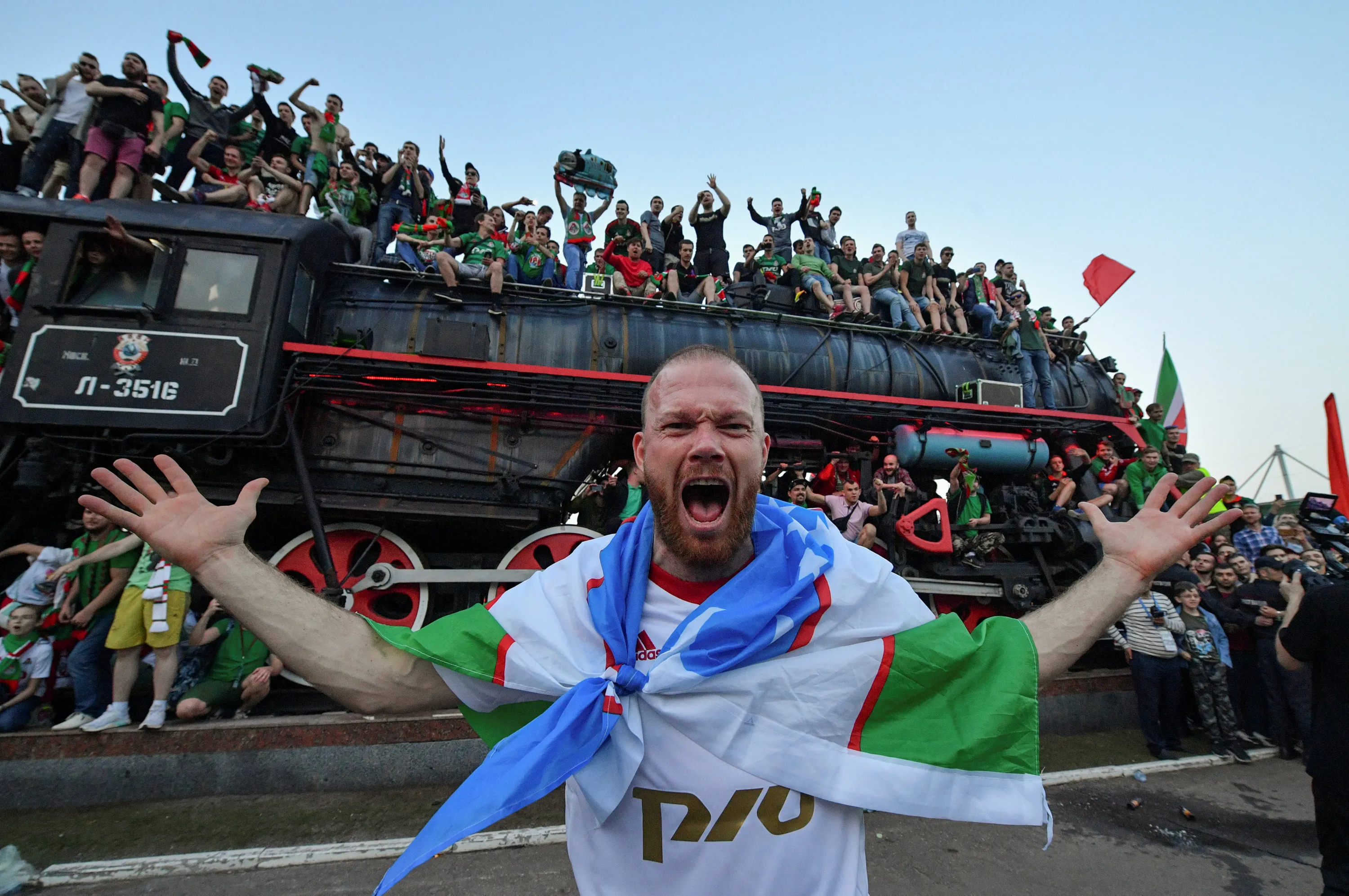 Lokomotiv Moscow’s Vitaliy Denisov reacts in front of fans after winning in the Russian Football League match between FC Lokomotiv Moscow and FC Zenit Saint Petersburg on May 5, 2018 at RZD Arena in Moscow, Russia. (Photo by Alexander Fedorov/Reuters)