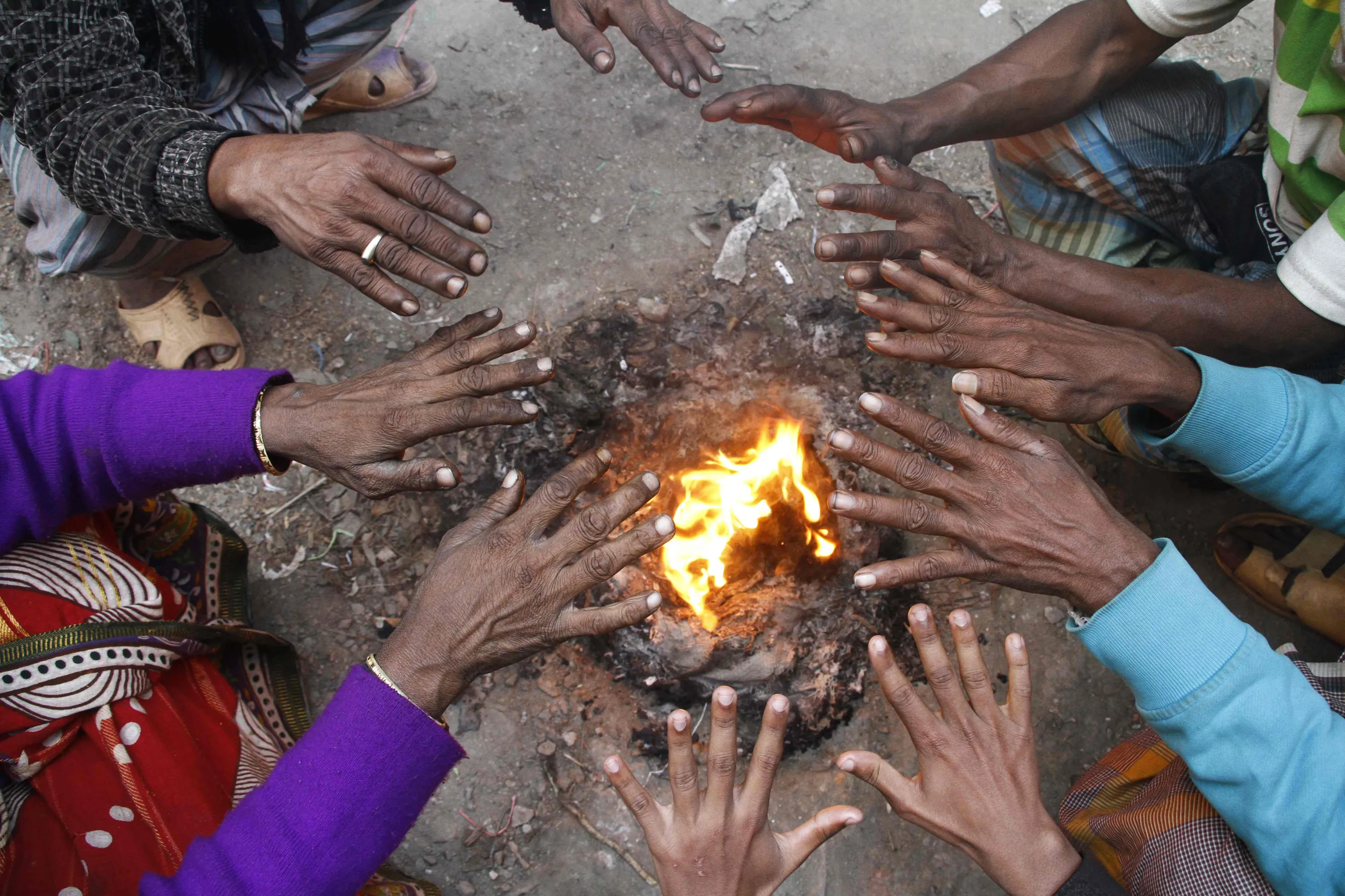 Bangladeshi workers warm themselves around a bon-fire in Dhaka on January 8, 2018. Bangladesh recorded its lowest ever temperature in history at 2.6 degrees in Tetulia, Panchagarh under the influence of a severe cold wave prevailing through the northern districts. (Photo by Rehman Asad/AFP Photo)