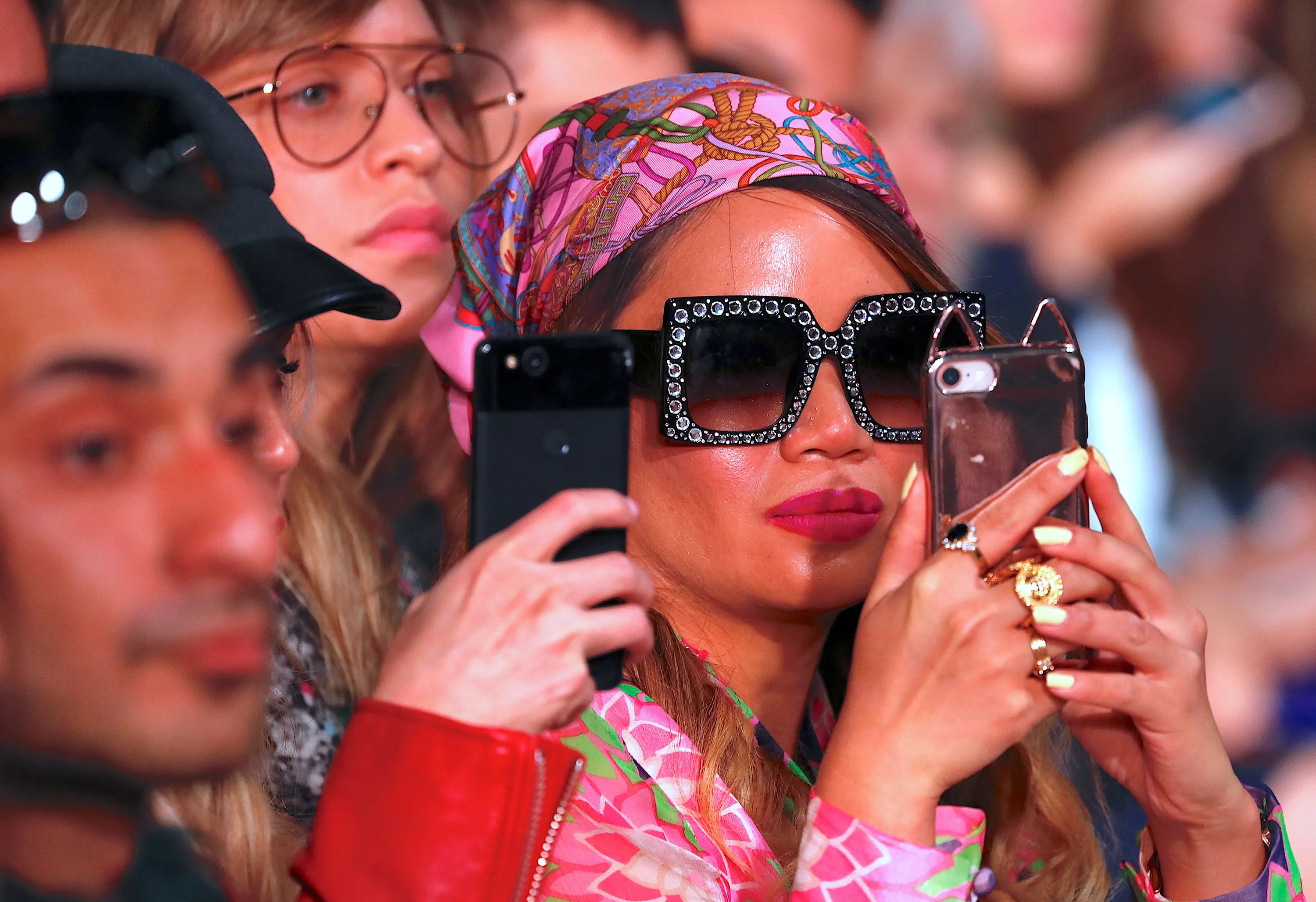 A member of the audience takes a photograph using her phone as models display designs by Australian fashion label Akira during a show at Australian Fashion Week in Sydney, Australia, May 17, 2018. (Photo by David Gray/Reuters)