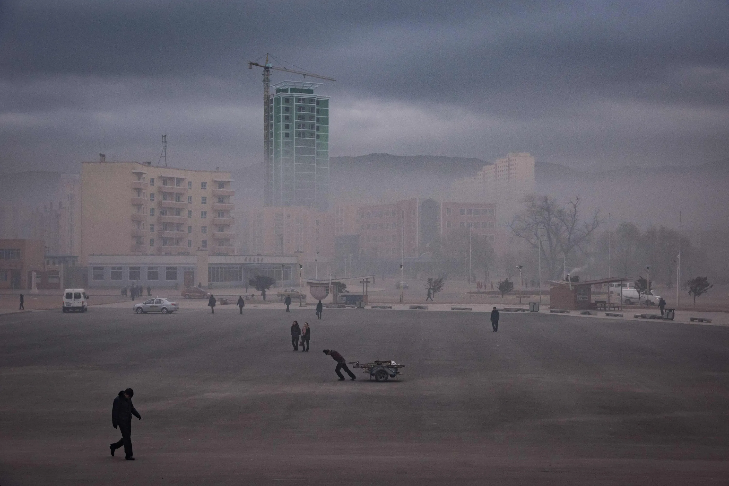 This photo taken on November 21, 2017 shows a general view of a public sqaure in Rason At the northeastern tip of North Korea, where the isolated, nuclear- armed country meets its giant neighbours China and Russia, United Nations sanctions on the regime over its weapons programmes are having an impact. And with the North facing further sanctions following its ICBM missile test on November 29, things are unlikely to get any easier for traders involved with the remote region' s Rason Special Economic Zone (SEZ). (Photo by Ed Jones/AFP Photo)