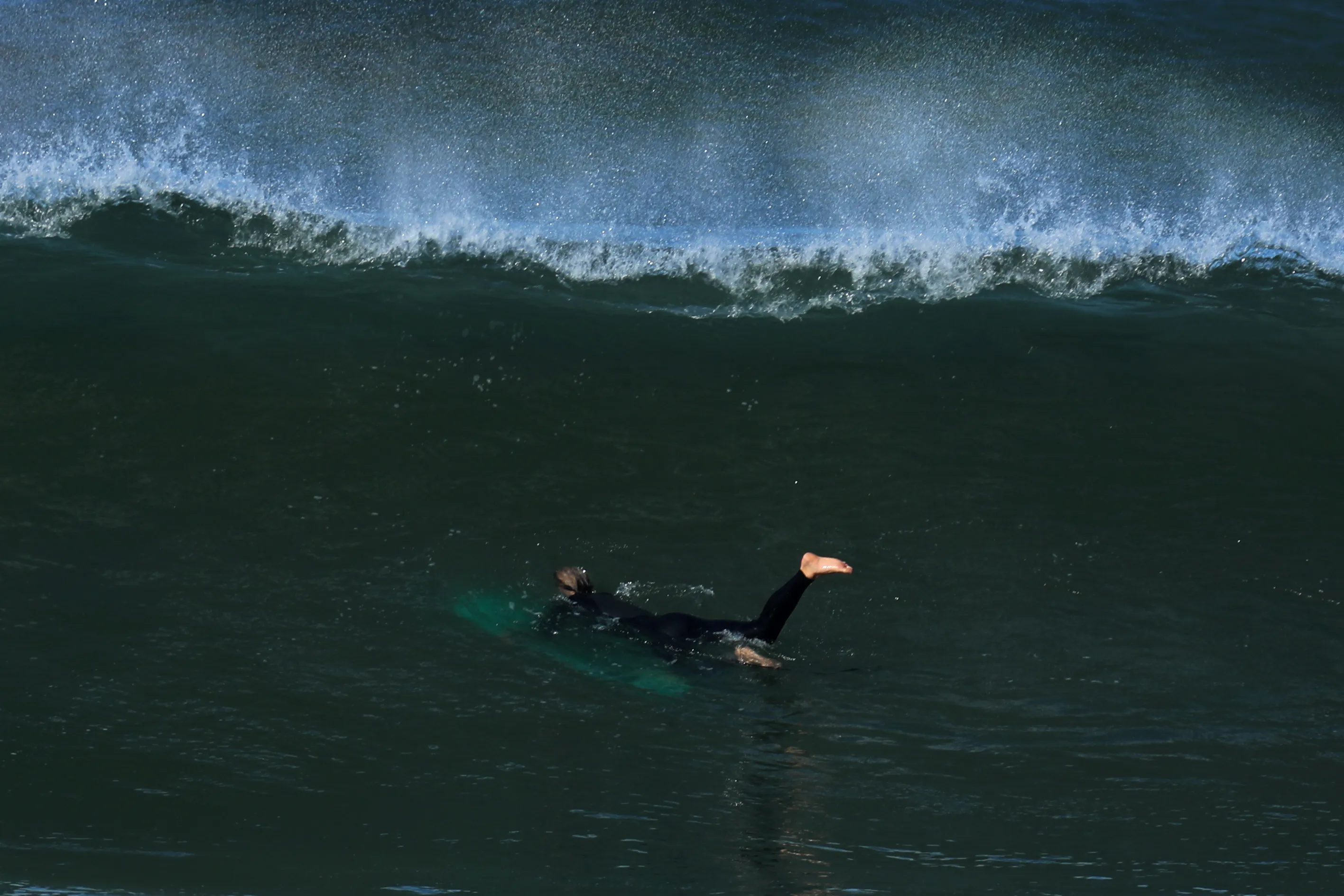 Surfer Tim Foreman ducks under a wave with his foil board while in the waters off Solana Beach, California on May 23, 2018. (Photo by Mike Blake/Reuters)