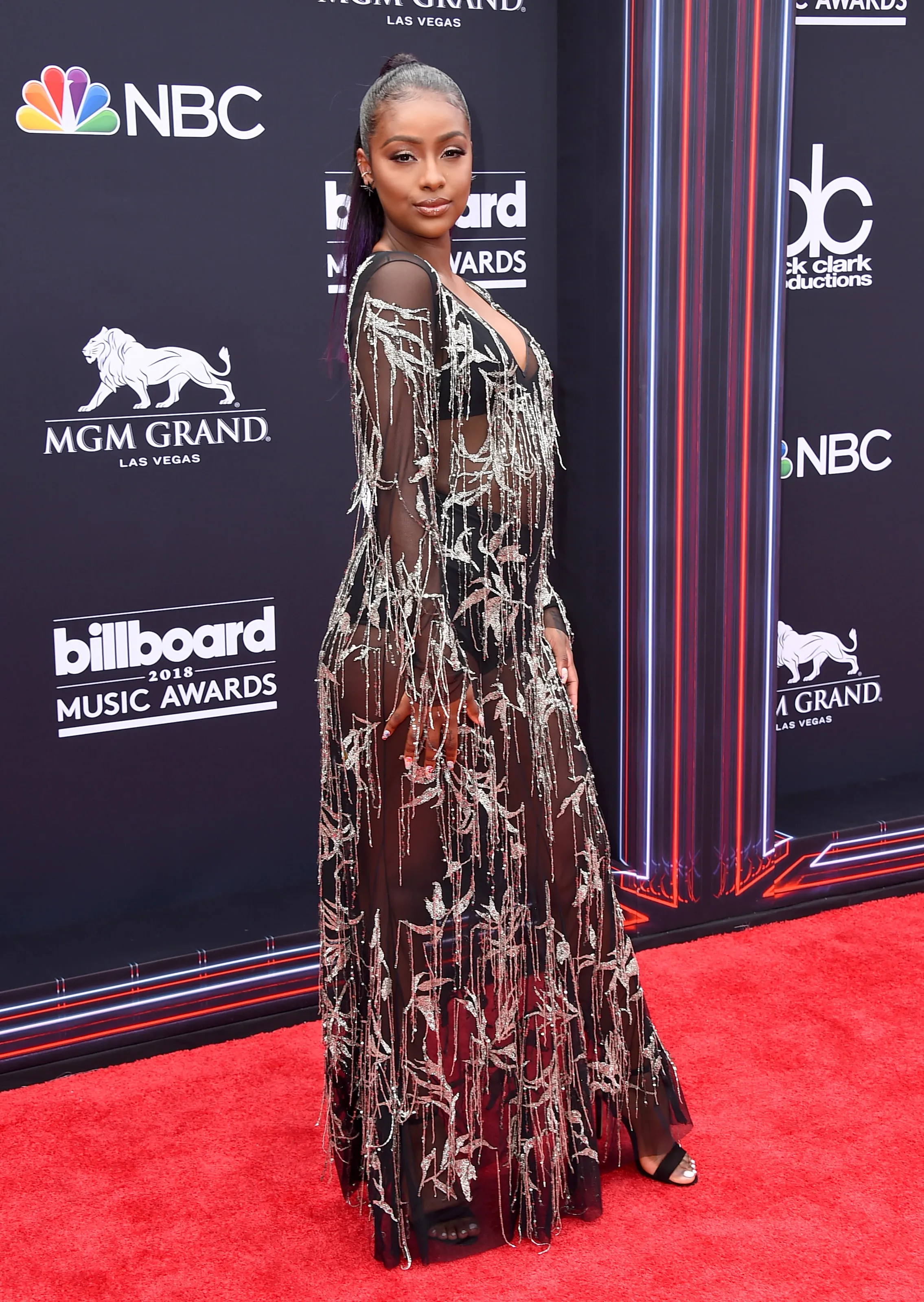 Justine Skye arrives at the Billboard Music Awards at the MGM Grand Garden Arena on Sunday, May 20, 2018, in Las Vegas. (Photo by Jordan Strauss/Invision/AP Photo)