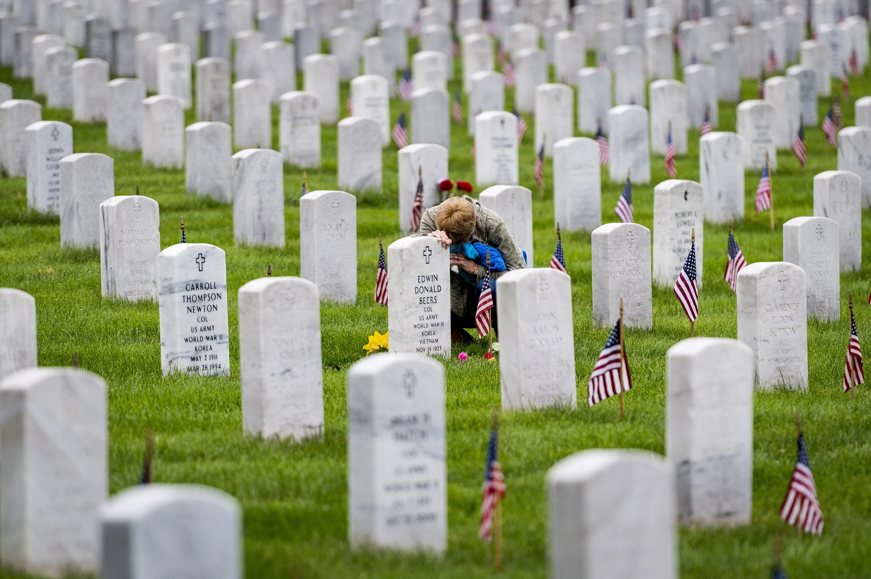 On Memorial Day, Brandi Quirk, 43 of Stafford, Virginia, USA, mourns the loss of her mother at the gravesite of her maternal grandparents in at Arlington National Cemetery in Arlington, Virginia, USA, on 28 May 2018. Quirk, who lost her mother 7 months ago, used to visit the gravesite every year with her mother on Memorial Day. (Photo by Pete Marovich/EPA/EFE)