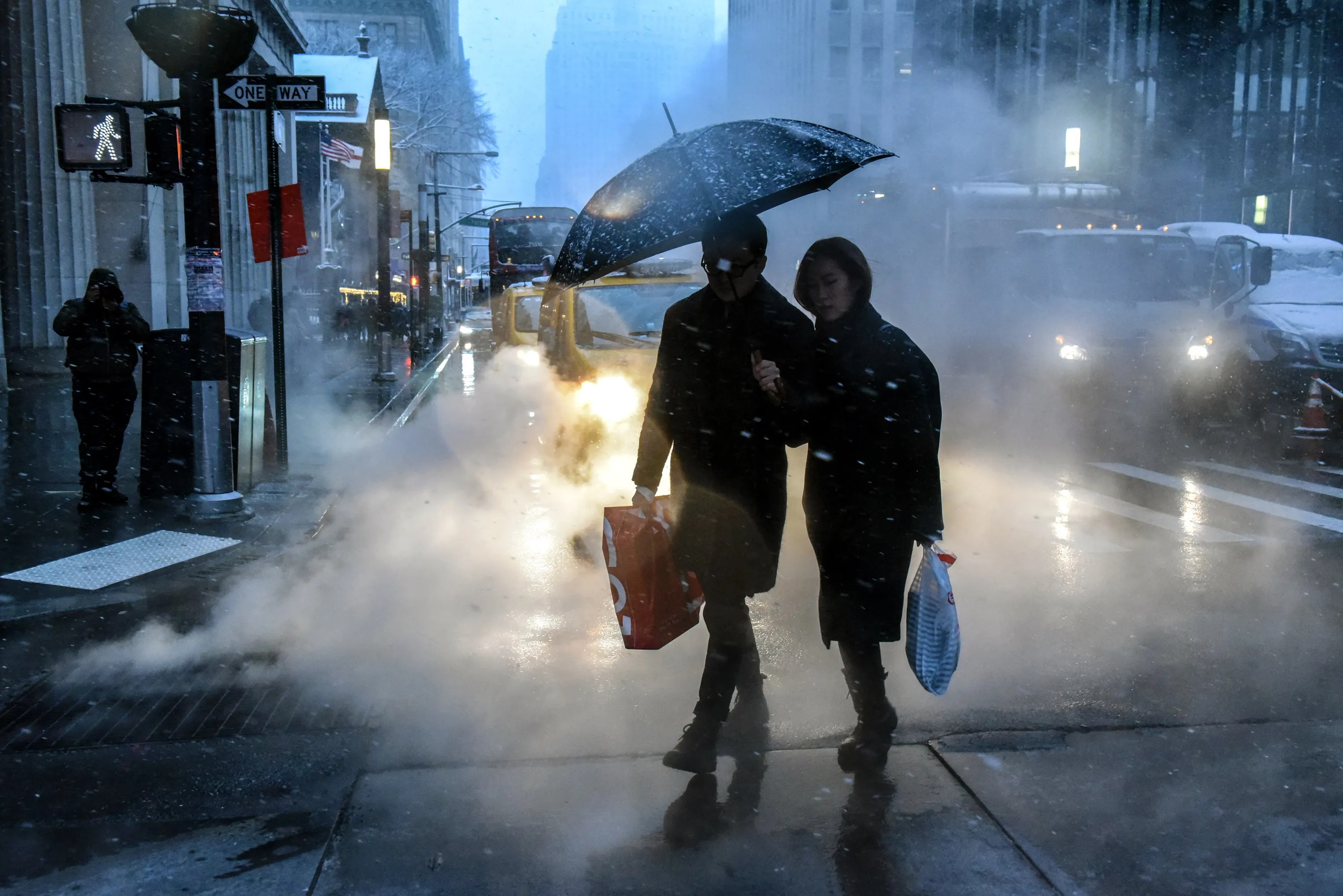 People walk through a snowy lower Manhattan on December 9, 2017 in New York City. The area is expected to see 3-6 inches of snow in the first snowfall of the season. (Photo by Stephanie Keith/Getty Images)