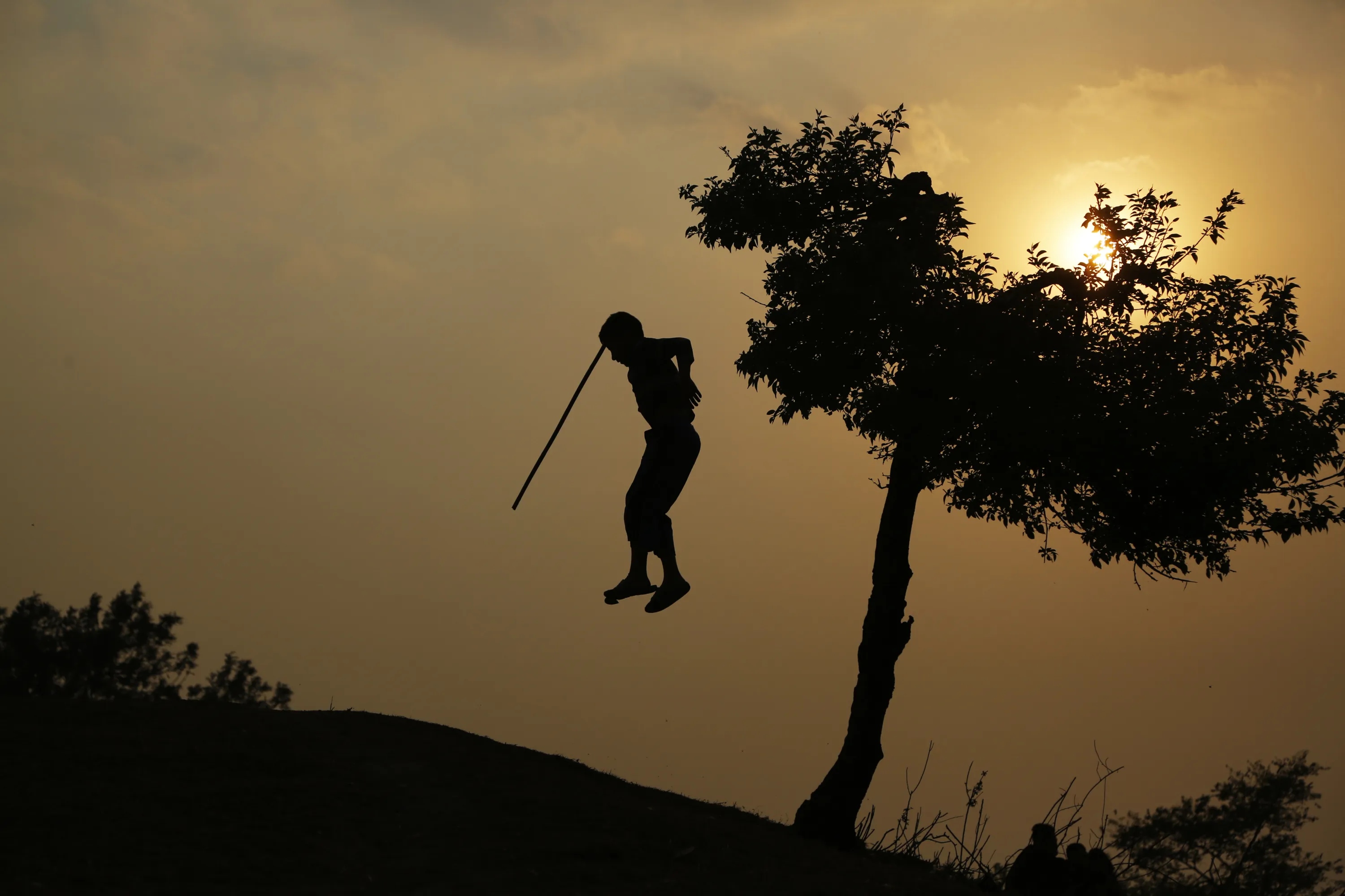 A Nepalese boy jumps from a tree during play in Kathmandu, Nepal, Tuesday, March 20, 2018. (Photo by Niranjan Shrestha/AP Photo)