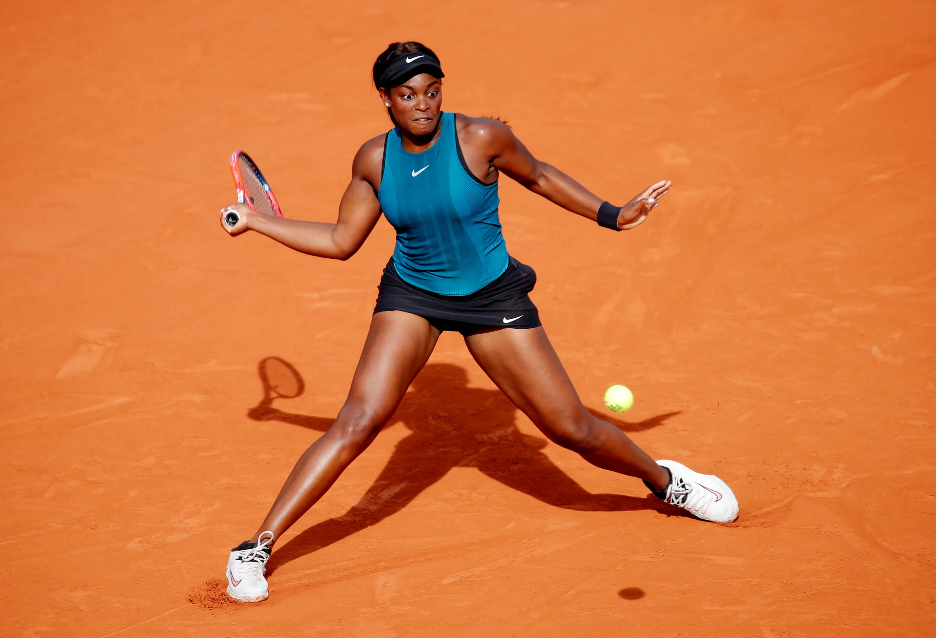 Sloane Stephens of the US plays a backhand return to Madison Keys of the US during their women' s singles semi- final match on day twelve of The Roland Garros 2018 French Open tennis tournament in Paris on June 7, 2018. (Photo by Charles Platiau/Reuters)