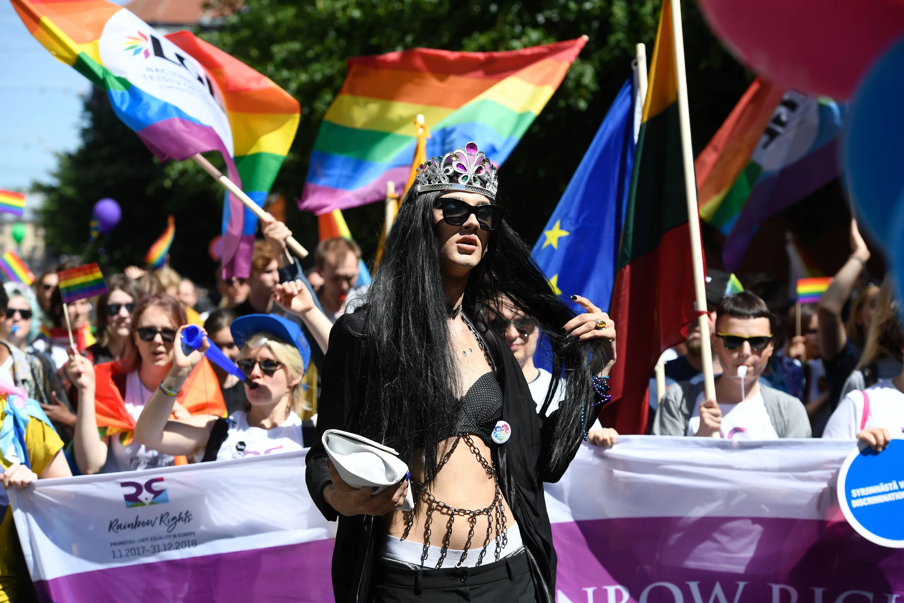 Protesters take part in the Baltic gay pride parade in Riga, Latvia on June 9, 2018. LGBT groups from Estonia, Latvia and Lithuania gather for the Baltic Pride parade 2018. (Photo by Ilmars Znotins/AFP Photo)
