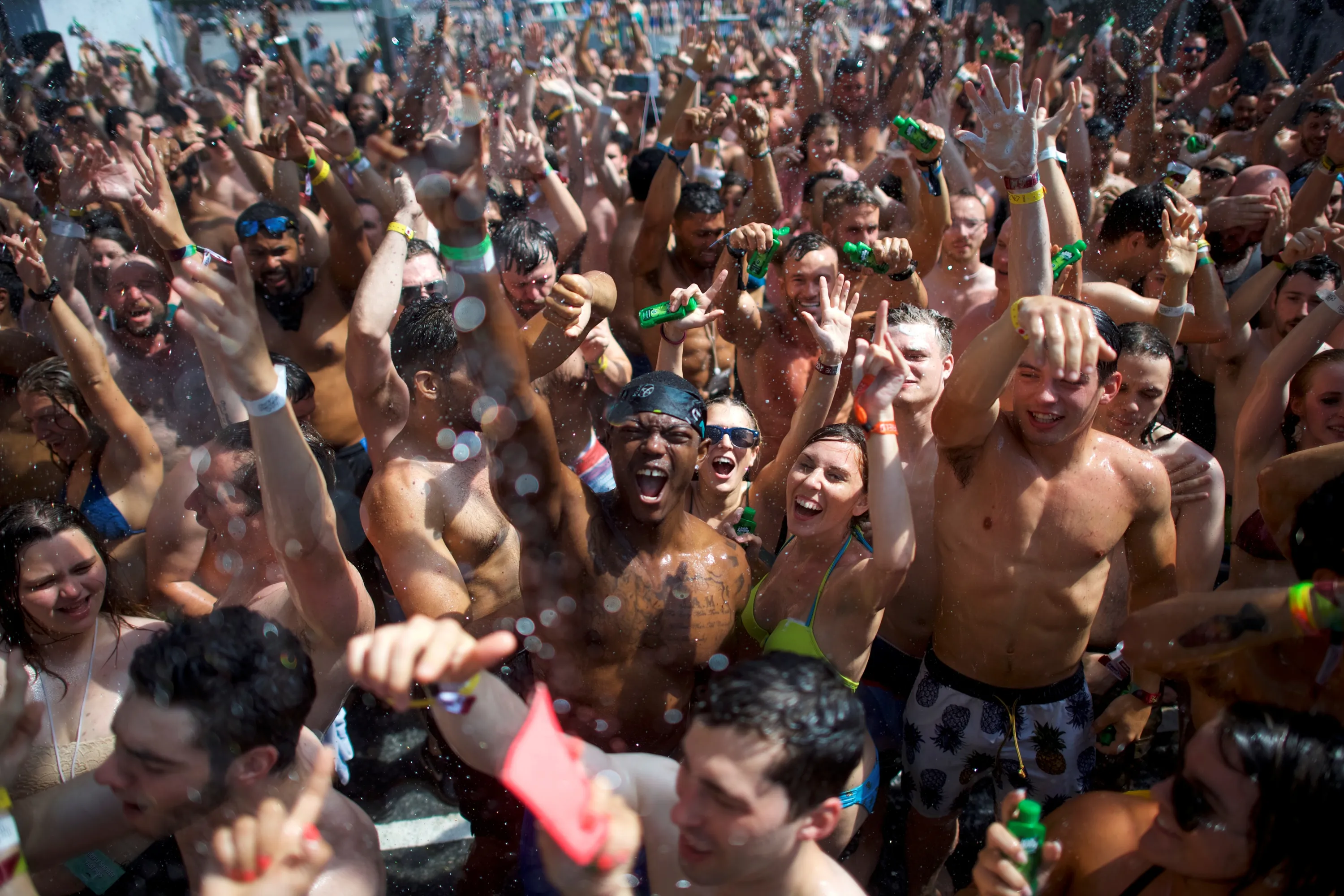 Revellers react while setting the Guinness World Record for the most people taking a simultaneous shower during the second day of the Firefly Music Festival in Dover, Delaware June 15, 2018. (Photo by Mark Makela/Reuters)
