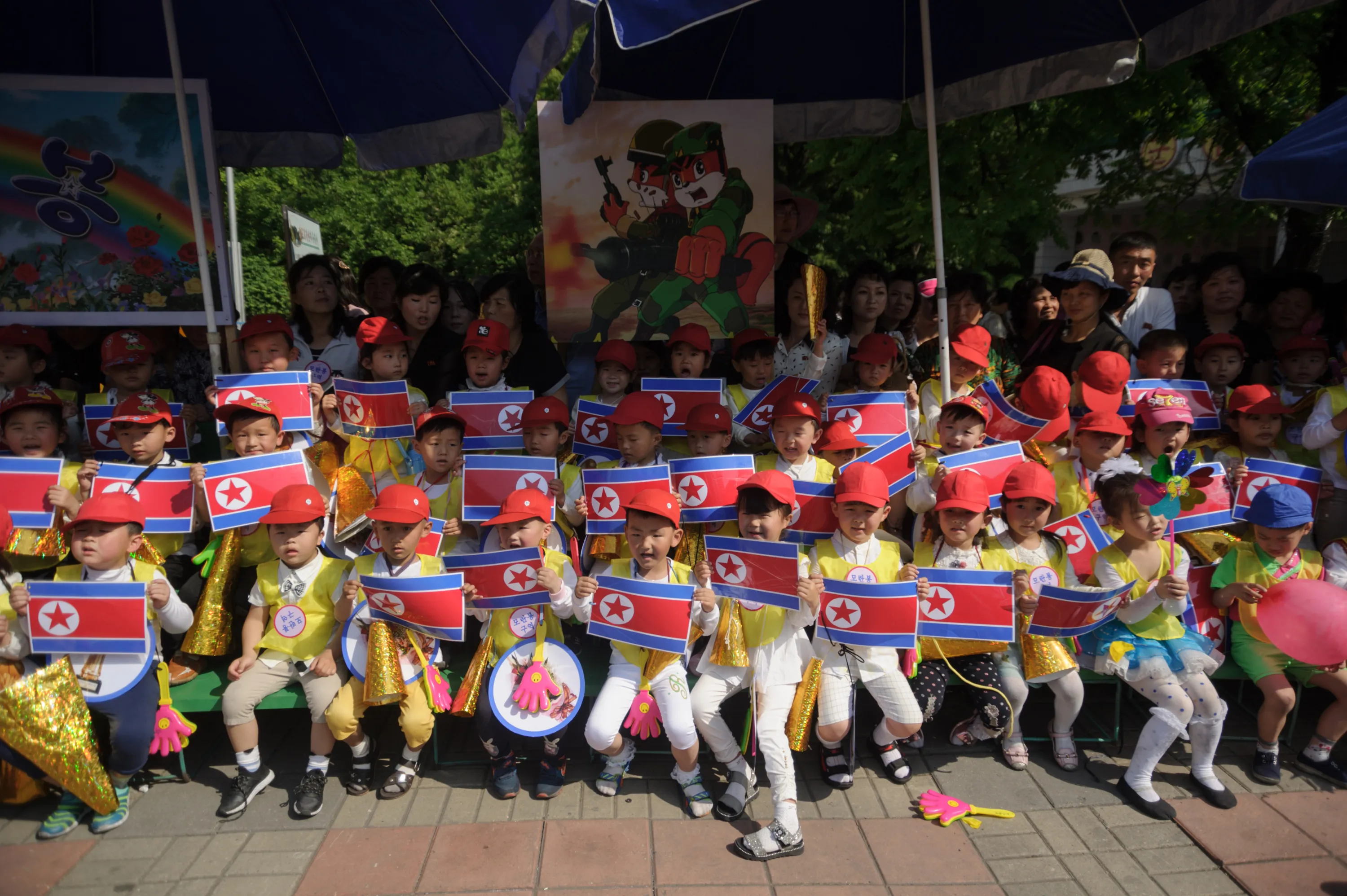 Children hold North Korea national flags at a joint friendship gathering to mark the 68th anniversary of an 'International Children's Day' event at the Kaeson Youth Park in Pyongyang on June 1, 2018. (Photo by Kim Won-Jin/AFP Photo)
