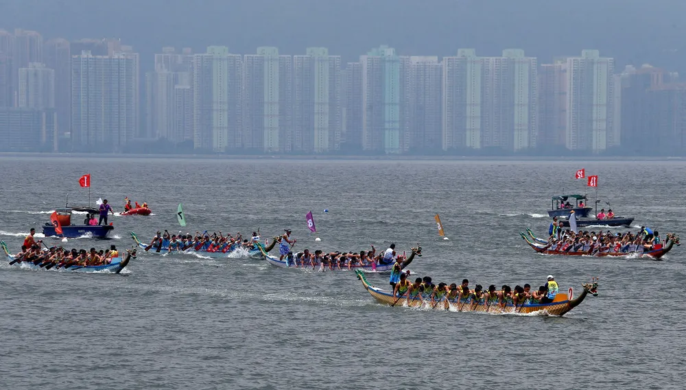 Participants compete during a race to mark Tung Ng or Dragon Boat Festival at Tolo Harbour in Hong Kong June 18, 2018. (Photo by Bobby Yip/Reuters)