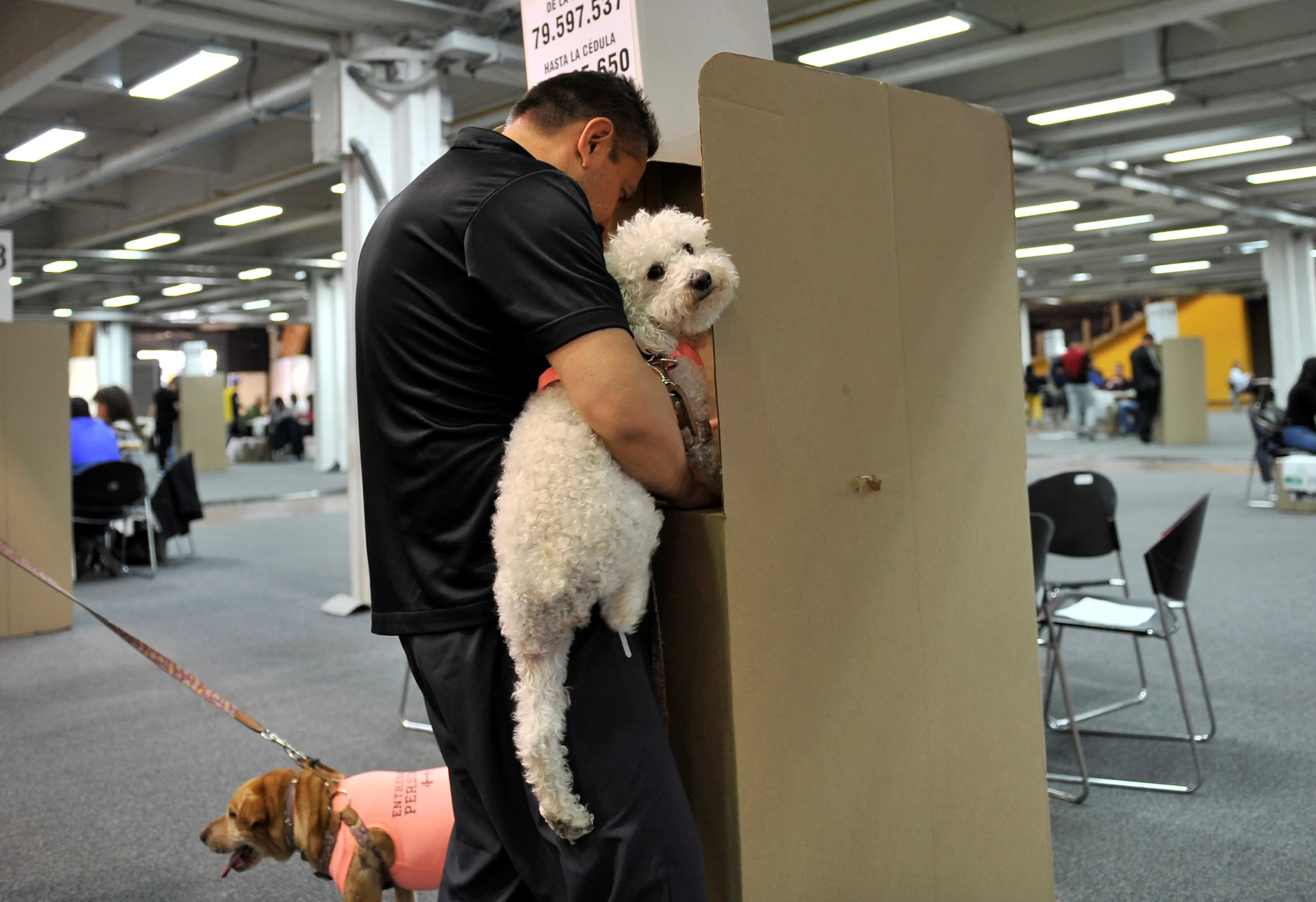 A man holds his dog while casting his vote at a polling station during the second round of the presidential election in Bogota, Colombia, June 17, 2018. (Photo by Carlos Julio Martinez/Reuters)