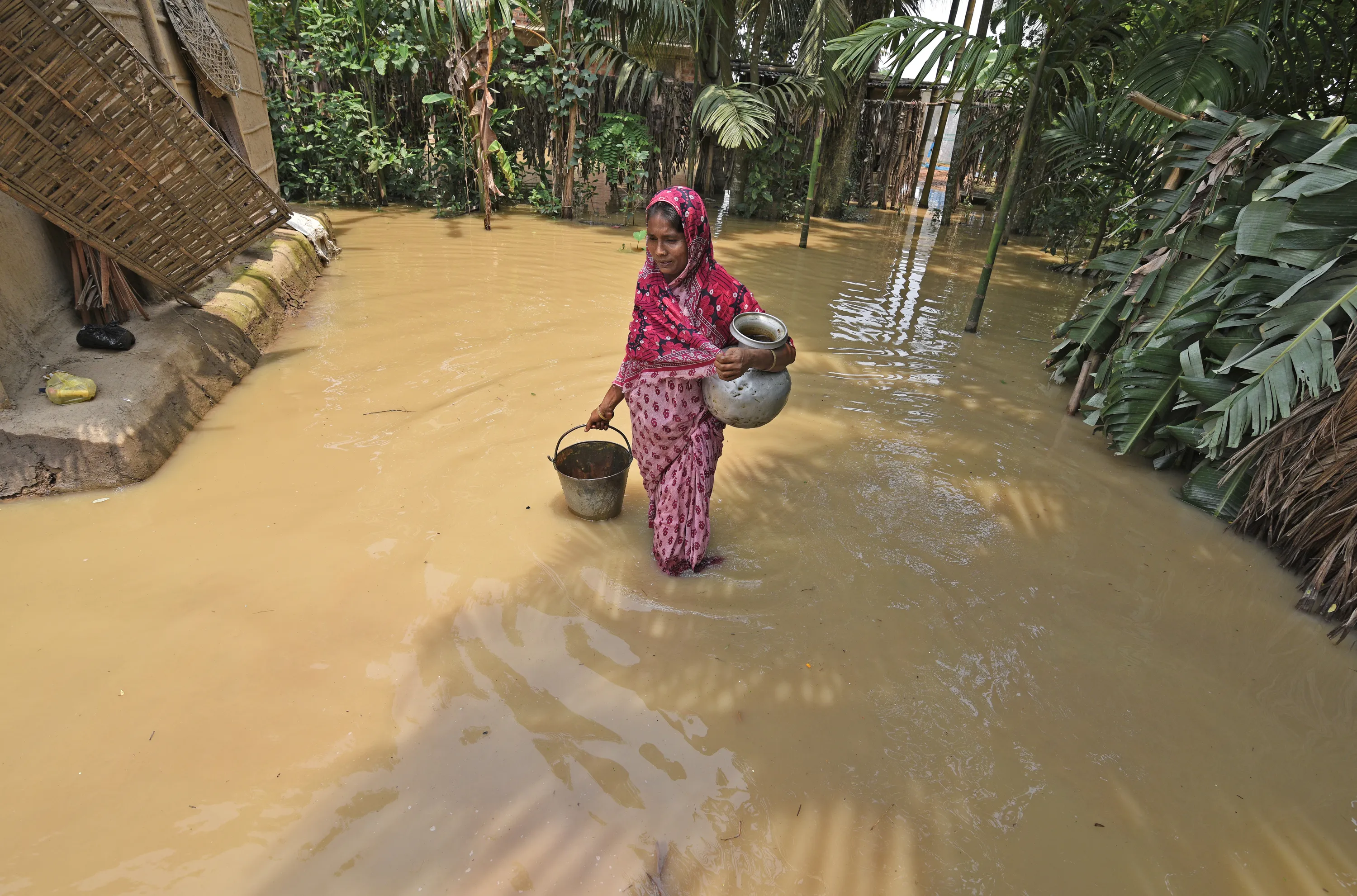 A woman carries drinking water after collecting it from a hand pump at a flood affected area in Hojai district, in the northeastern state of Assam, India, June 17, 2018. (Photo by Anuwar Hazarika/Reuters)