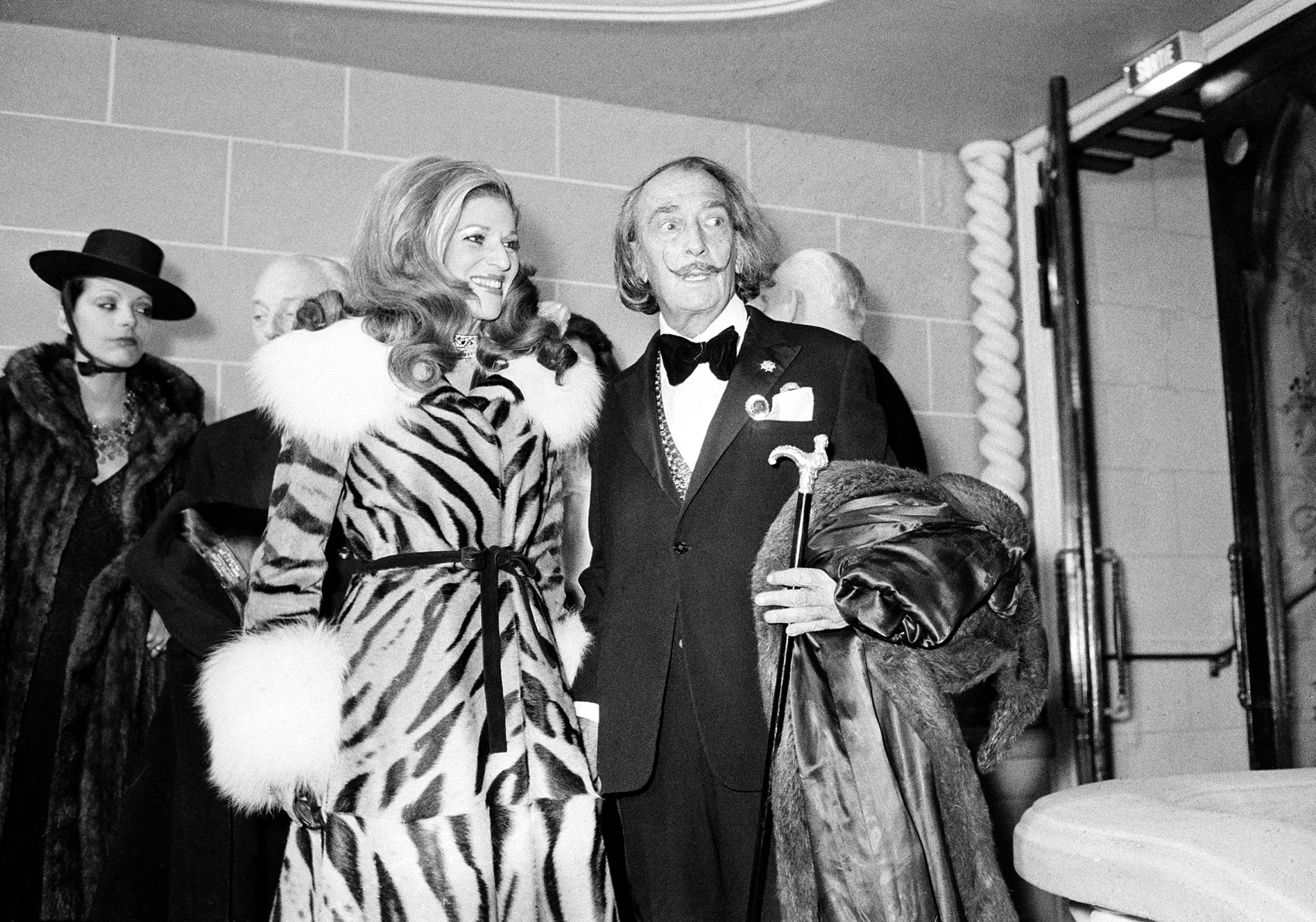 French Baroness Marie-Helene de Rothschild and Spanish surrealist Salvador Dali appear at the opening of the nightclub Lido in Paris, on January 3, 1974. (Photo by AP Photo)