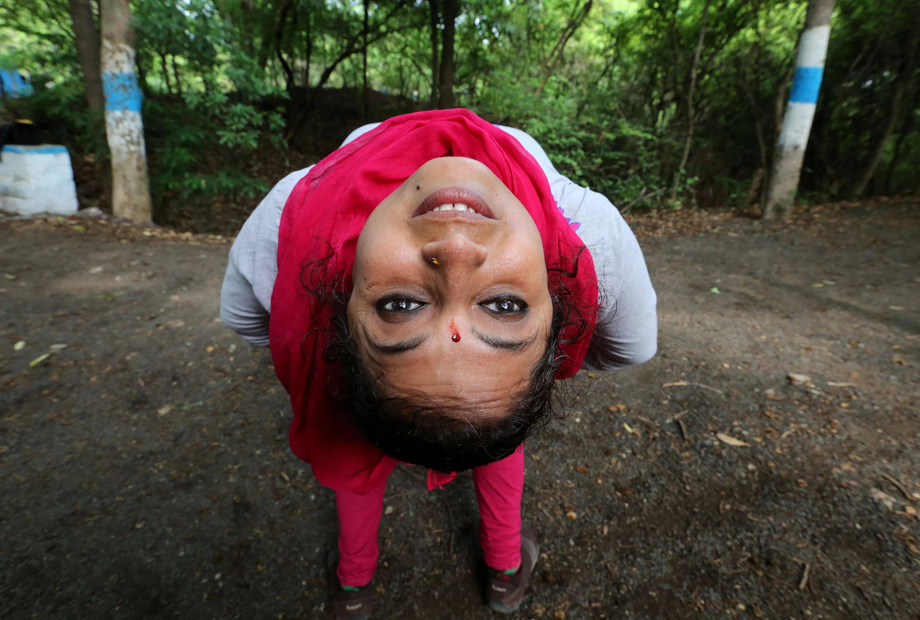 Indian people practices yoga at a park in the morning in preparations for World Yoga Day in Bhopal, India, 18 June 2018. The International World Yoga Day will be observed on 21 June. (Photo by Sanjeev Gupta/EPA/EFE)