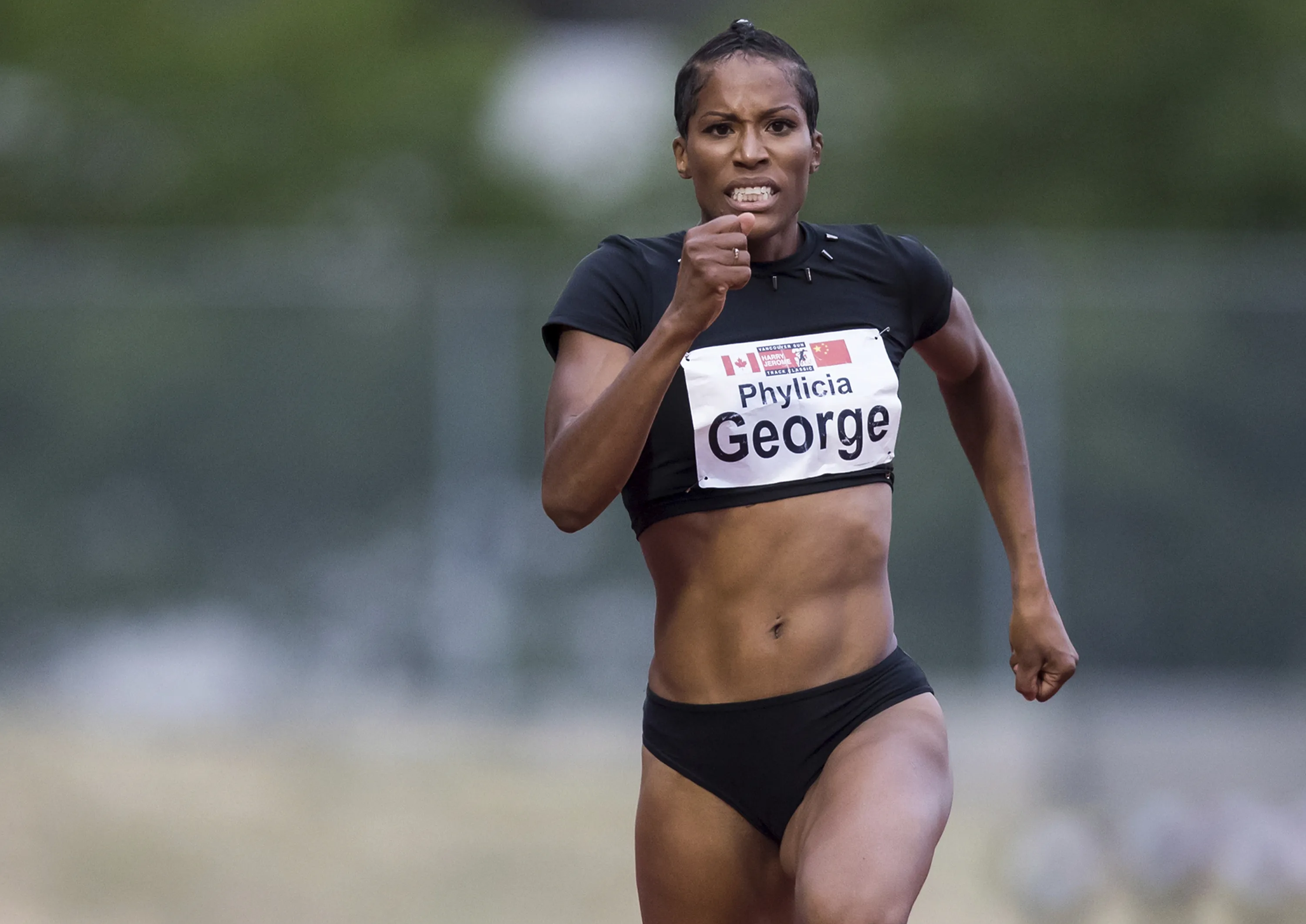 Phylicia George, of Canada, races to a fourth-place finish during the women's 200 meters at the Harry Jerome International Track Classic on Wednesday, June 27, 2018, in Burnaby, British Columbia. (Photo by Darryl Dyck/The Canadian Press via AP Photo)