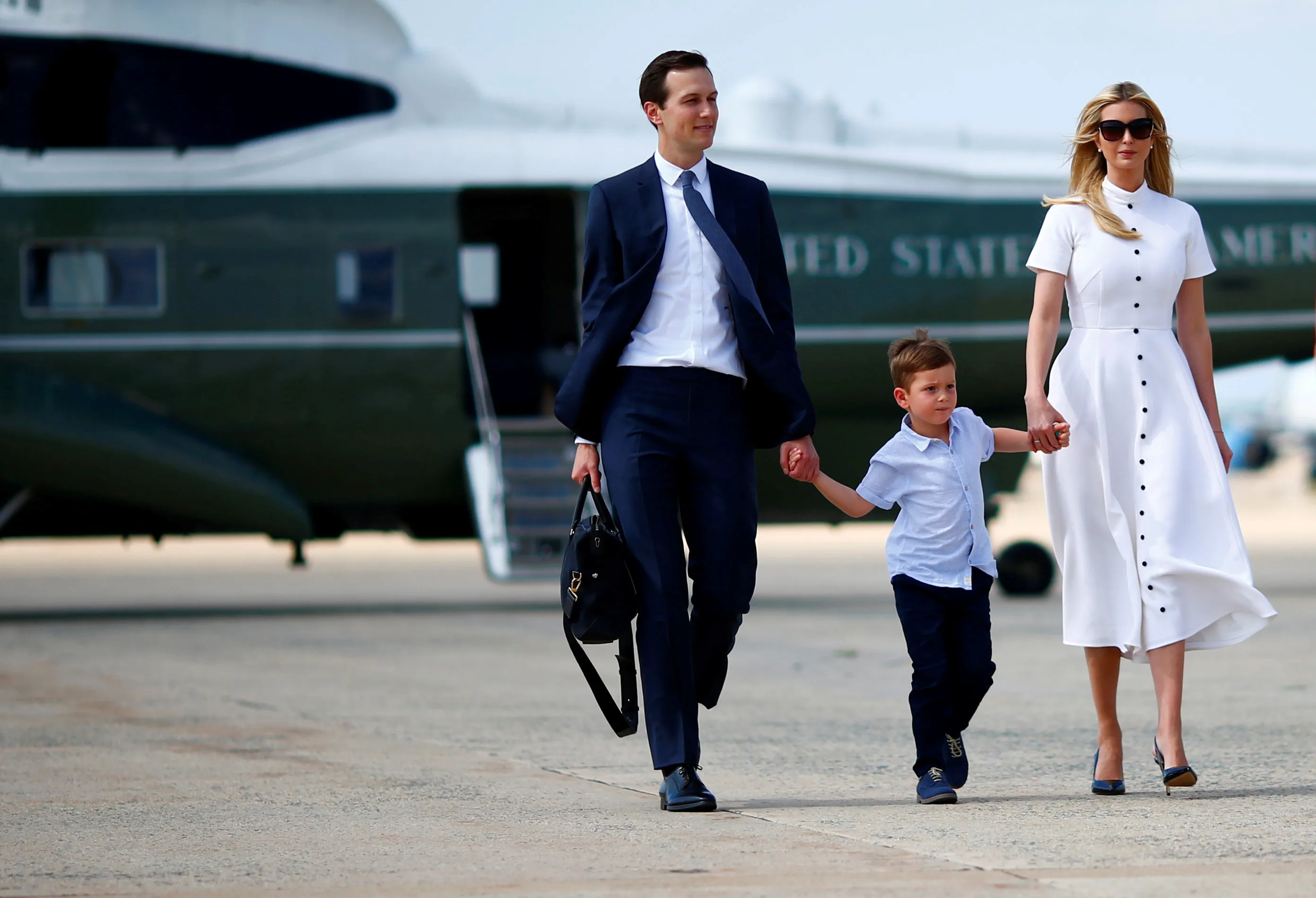 Jared Kushner, Ivanka Trump and their son Theodore board Air Force One as they depart for Bedminster, New Jersey, from Joint Base Andrews, Maryland, U.S., June 29, 2018. (Photo by Eric Thayer/Reuters)