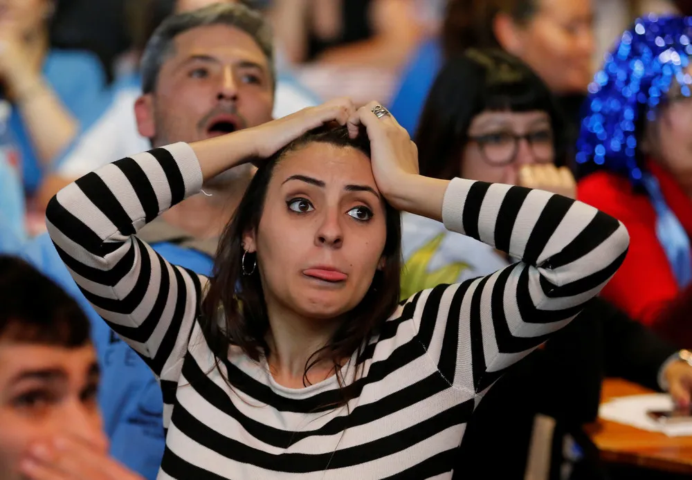 Uruguay's fans watch a broadcast of the Russia 2018 FIFA World Cup football match Uruguay against Portugal at a bar in Montevideo on June 30, 2018. (Photo by Andres Stapff/Reuters)