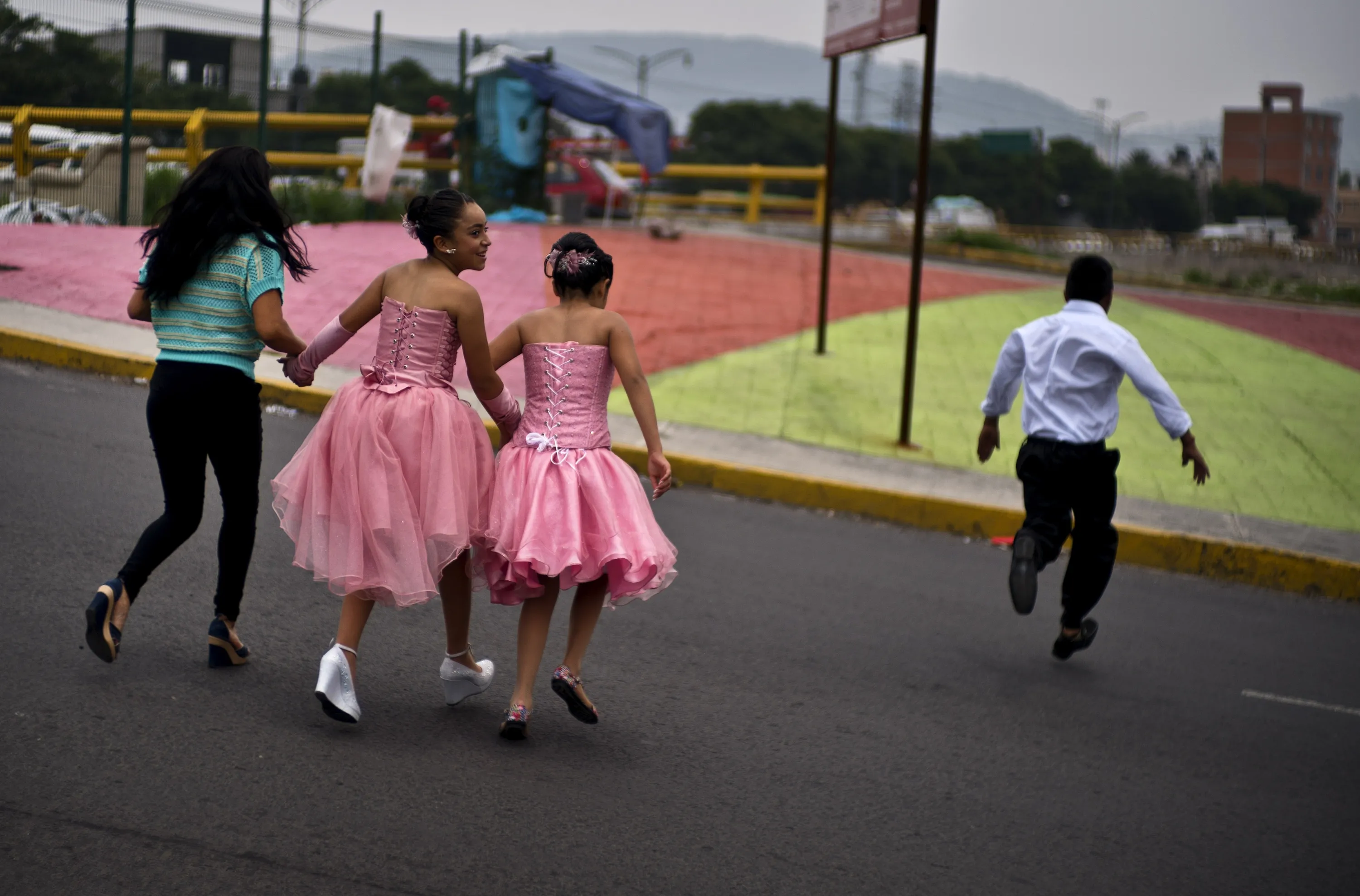 Young students dressed to celebrate their last day of class run across a street in Mexico City, Mexico, Friday, June 29, 2018. Mexicans vote Sunday for positions at every level of government in the country's largest ever elections highlighted by a presidential race led by a slow-speaking leftist cast as genuine change. (Photo by Ramon Espinosa/AP Photo)