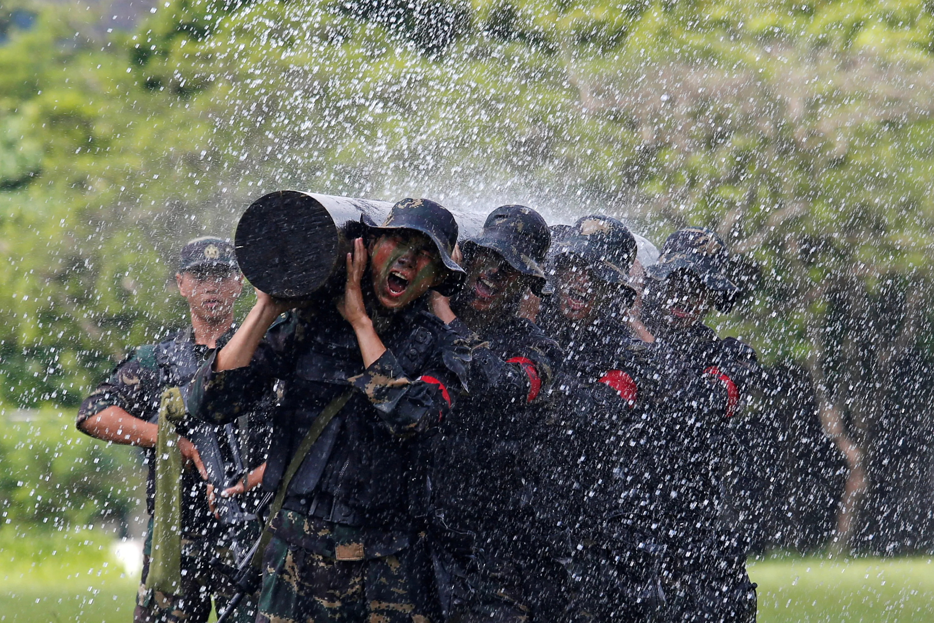 People's Liberation Army soldiers perform at an airbase in Hong Kong, China June 30, 2018, a day before the 21st anniversary of the city's return to Chinese sovereignty from British rule. (Photo by Bobby Yip/Reuters)
