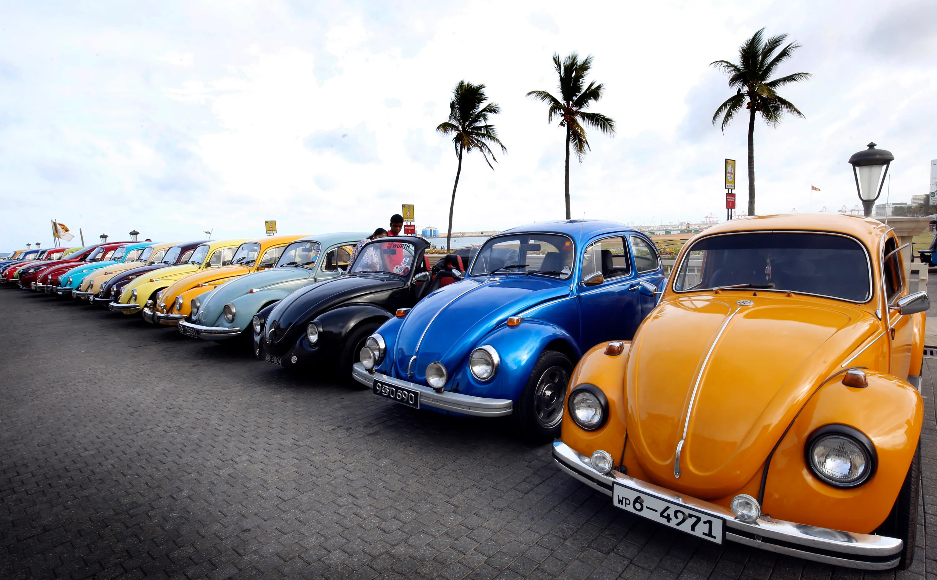 Classic and custom-built Volkswagen cars in Sri Lanka since the early 1950s gather in celebration of the World Volkswagen Day at Hotel Galle Face in Colombo, Sri Lanka, 01 July 2018. A Sri Lankan VW Beetle owners’ club organized the rally. The Volkswagen Beetle has been a popular car in the island since the early 1950s and even now there are many which have been single owned or passed down to the second generation. (Photo by M.A. Pushpa Kumara/EPA/EFE)