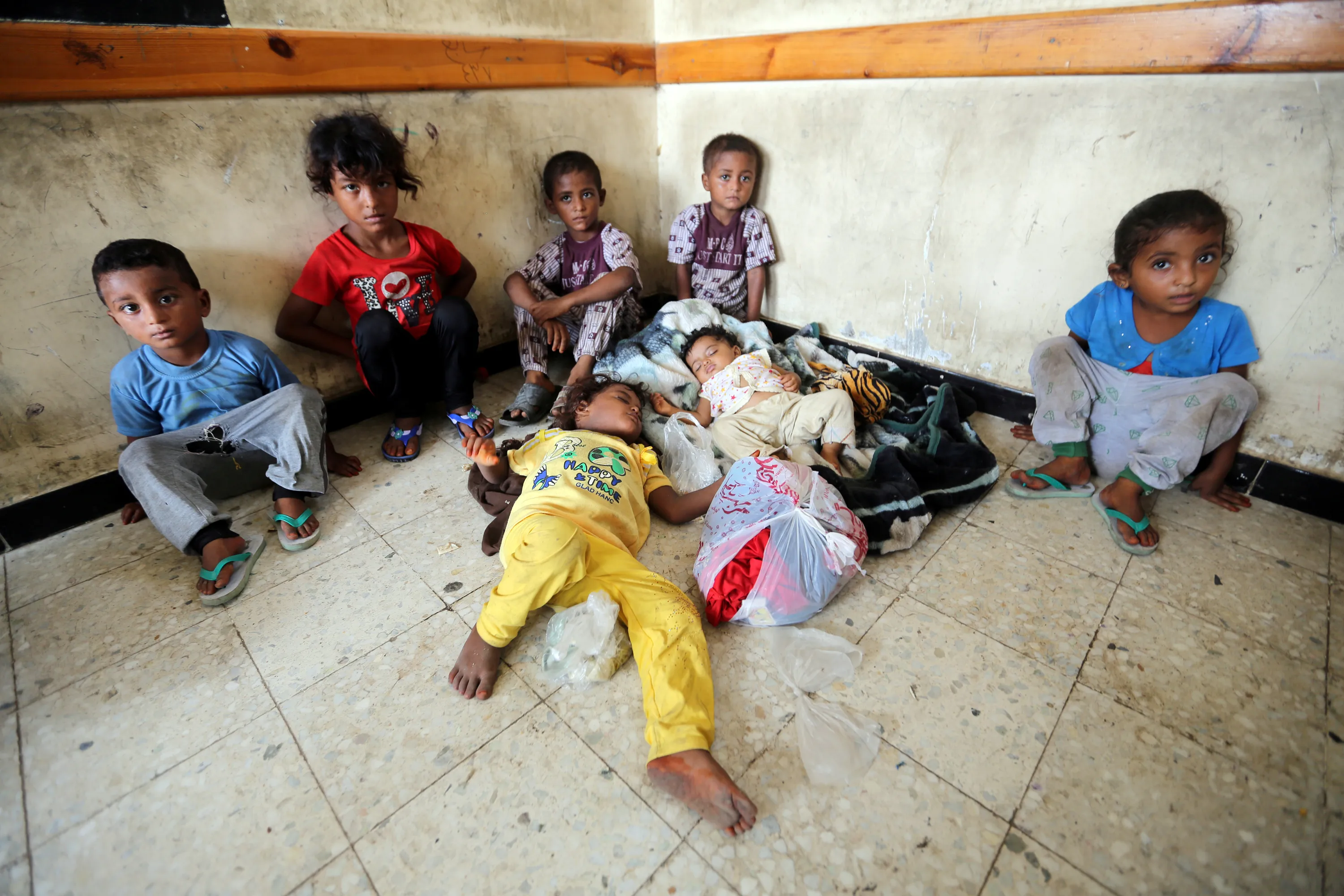 Children sit in a classroom of a school to which they have been evacuated from a village near Hodeidah airport amid fighting between government forces and Houthi fighters in Hodeidah, Yemen June 17, 2018. (Photo by Abduljabbar Zeyad/Reuters)