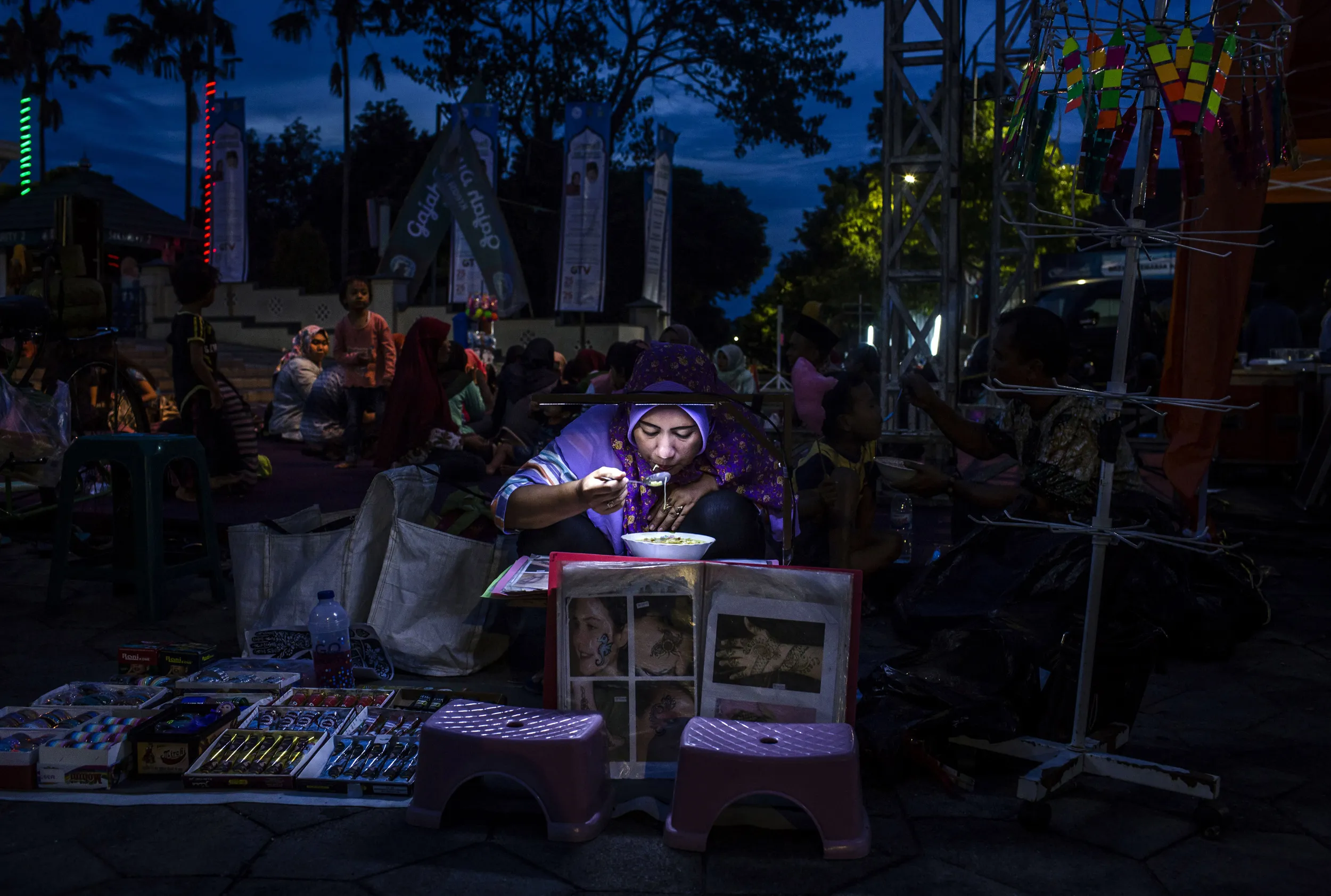 A muslim woman iftar on the first day of the holy month of Ramadan at the yard of Grand mosque on May 17, 2018 in Surabaya, Indonesia. Indonesia will begin observing Ramadan on Thursday where millions of Muslims begin the fasting from dawn-to-dusk for a month. For the Islamic State group, Ramadan has become a strategic time to strike as Indonesians faced an uptick of violence linked to the terrorist group during gruesome attacks at three churches and a police station around Surabaya which involved using children as suicide bombers. (Photo by Ulet Ifansasti/Getty Images)