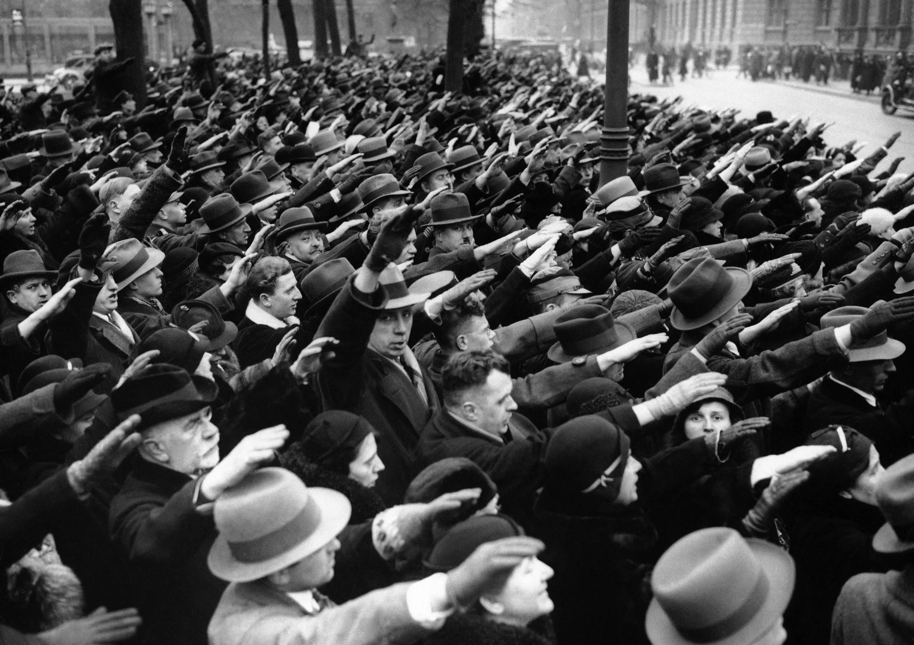 On occasion of the first anniversary of Adolf Hitler�s government, an enormous crowd gathered in the Wilhelmstrasse and shouted to the chancellor in Berlin, Germany on February 9, 1934. (Photo by AP Photo)