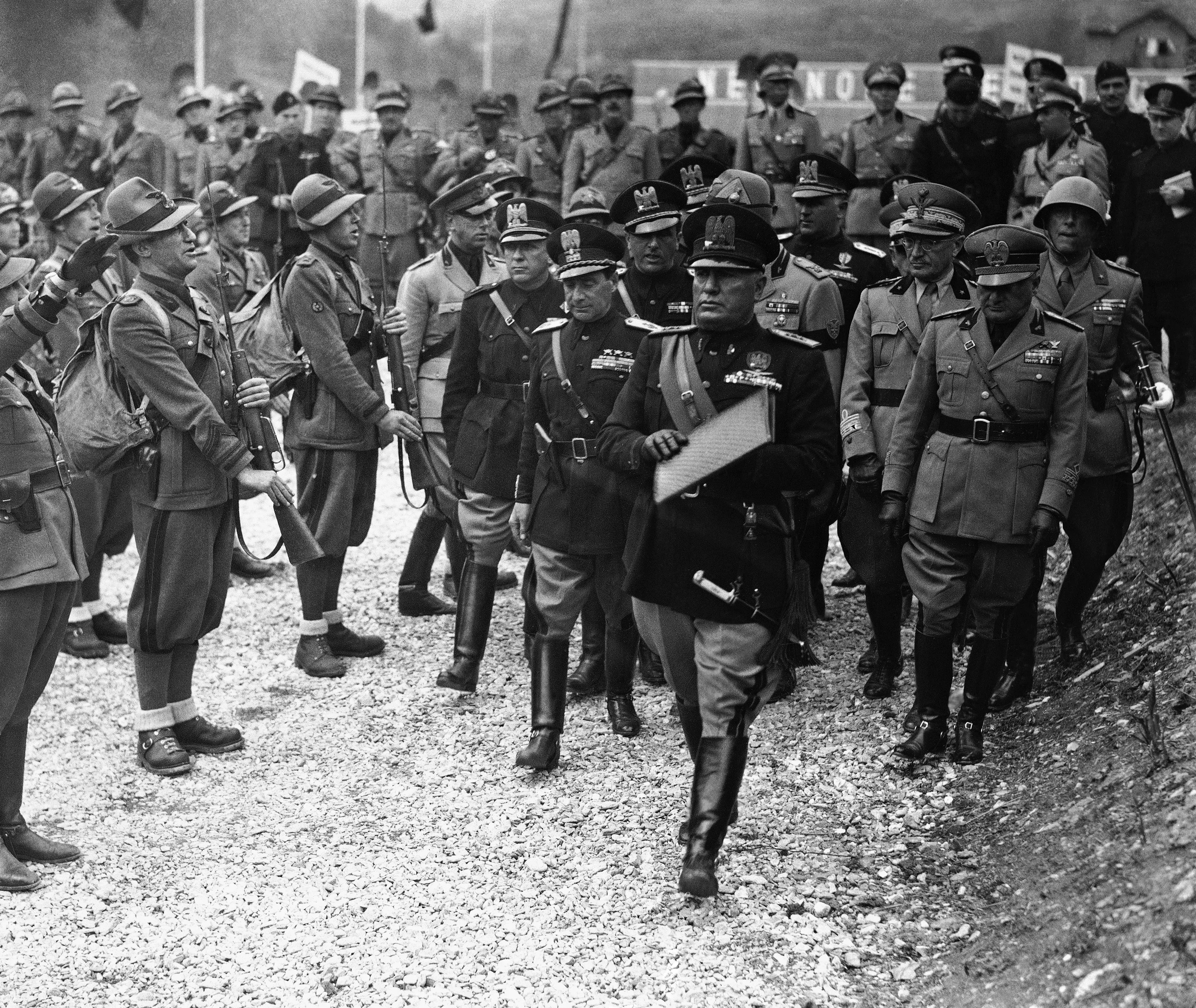 During his tour of Northern Italy, Il Duce arrived at Bardonecchia, on the Italo-French frontier. He examined the frontier defences and a salute of heavy guns made the mountains ring. Italian dictator Benito Mussolini inspecting Italian Alpine Troops during his visit to Bardonecchia, Italy, on May 16, 1939. (Photo by AP Photo)