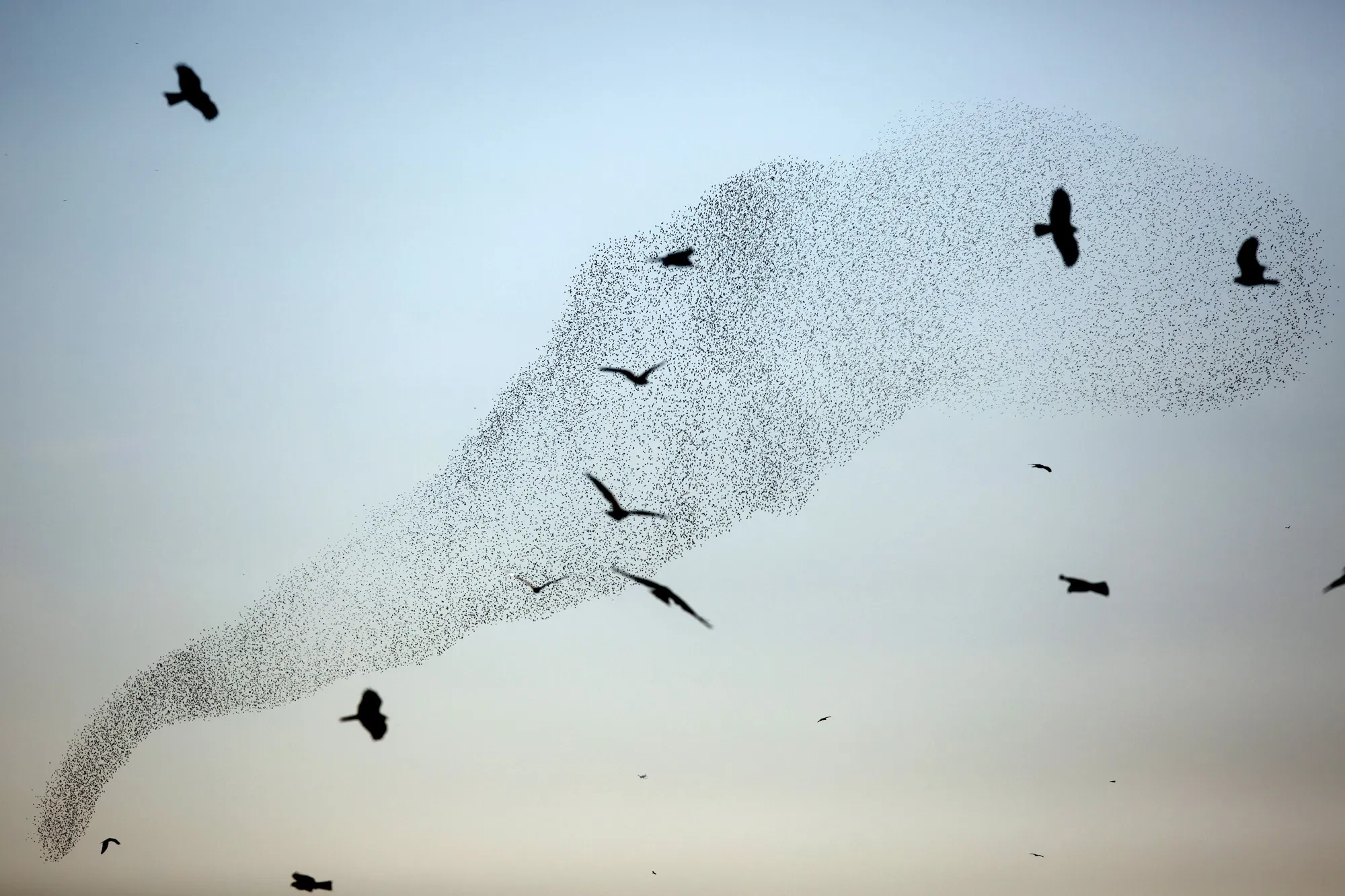 A picture taken on January 4, 2016 shows a murmuration of starlings performing their traditional dance fly before landing to sleep near the southern Arab Israeli city of Rahat, in the northern Israeli Negev desert. (Photo by Menahem Kahana/AFP Photo)