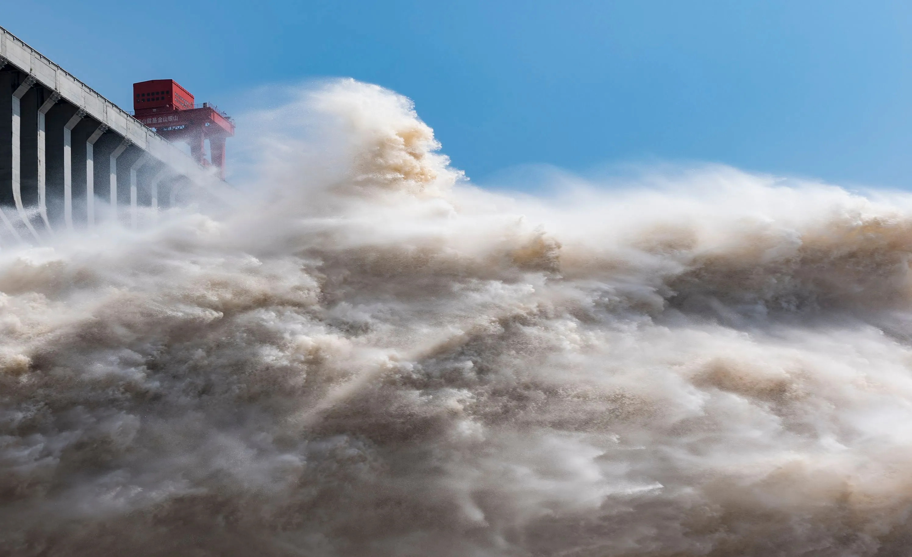 Three Gorges Dam opens gates to discharge floodwaters on the Yangtze River in Yichang city, Hubei province, China on July 15, 2018. The Three Gorges Dam, a gigantic hydropower project on the Yangtze River, opened its gates to discharge floodwaters as the new flood of the Yangtze River this year has formed on its upper reaches. (Photo by Imaginechina/Rex Features/Shutterstock)