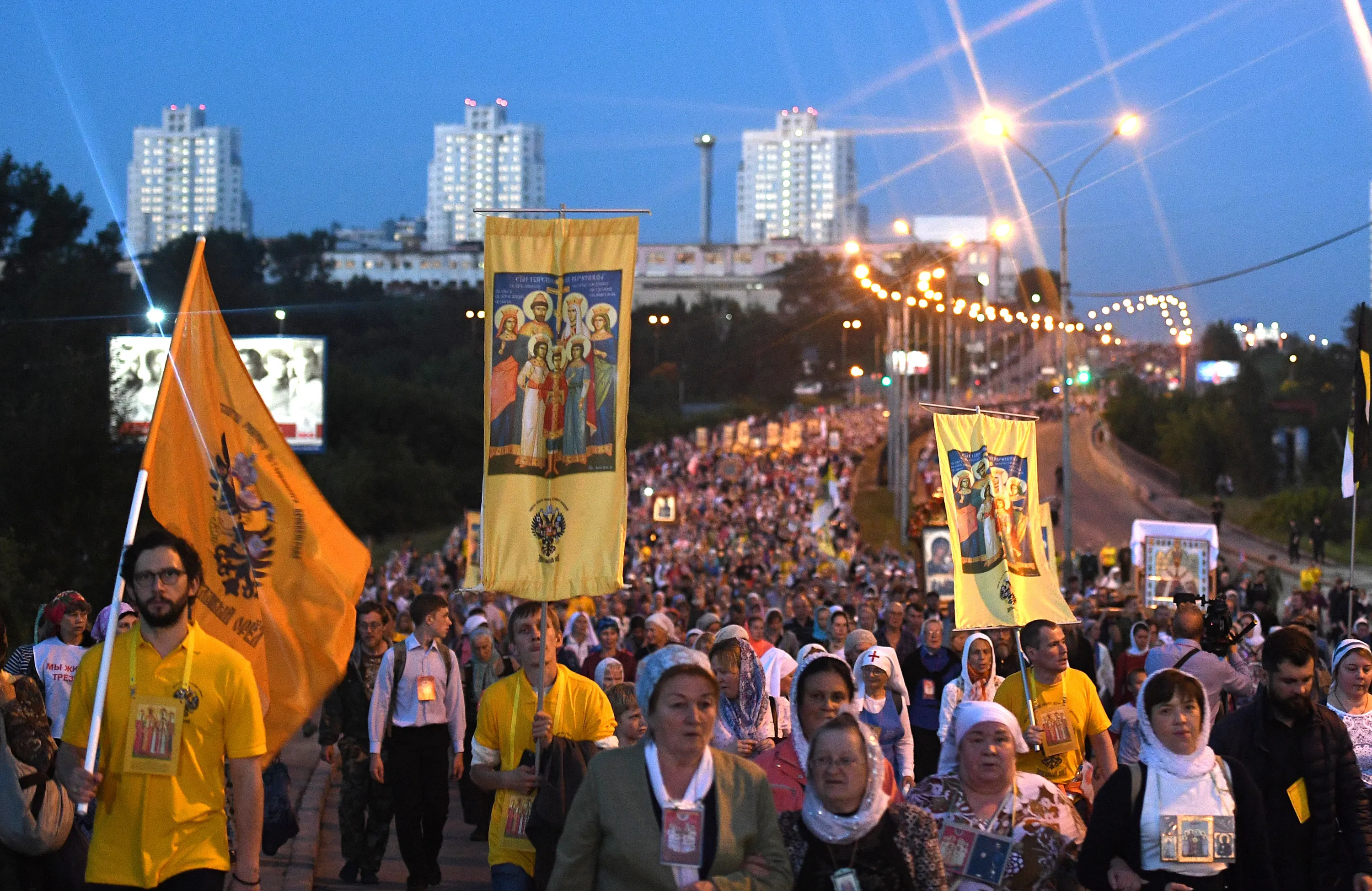 A religious procession marking the centenary of the execution of the Russian royal family. Tsar Nicholas II, his wife Alexandra Feodorovna, their five children Olga, Tatiana, Maria, Anastasia, and Alexei, along with physician Yevgeny Botkin and three servants were executed by Bolshevik revolutionaries on July 17, 1918 in Yekaterinburg, Russia on July 16, 2018. (Photo by Donat Sorokin/TASS)