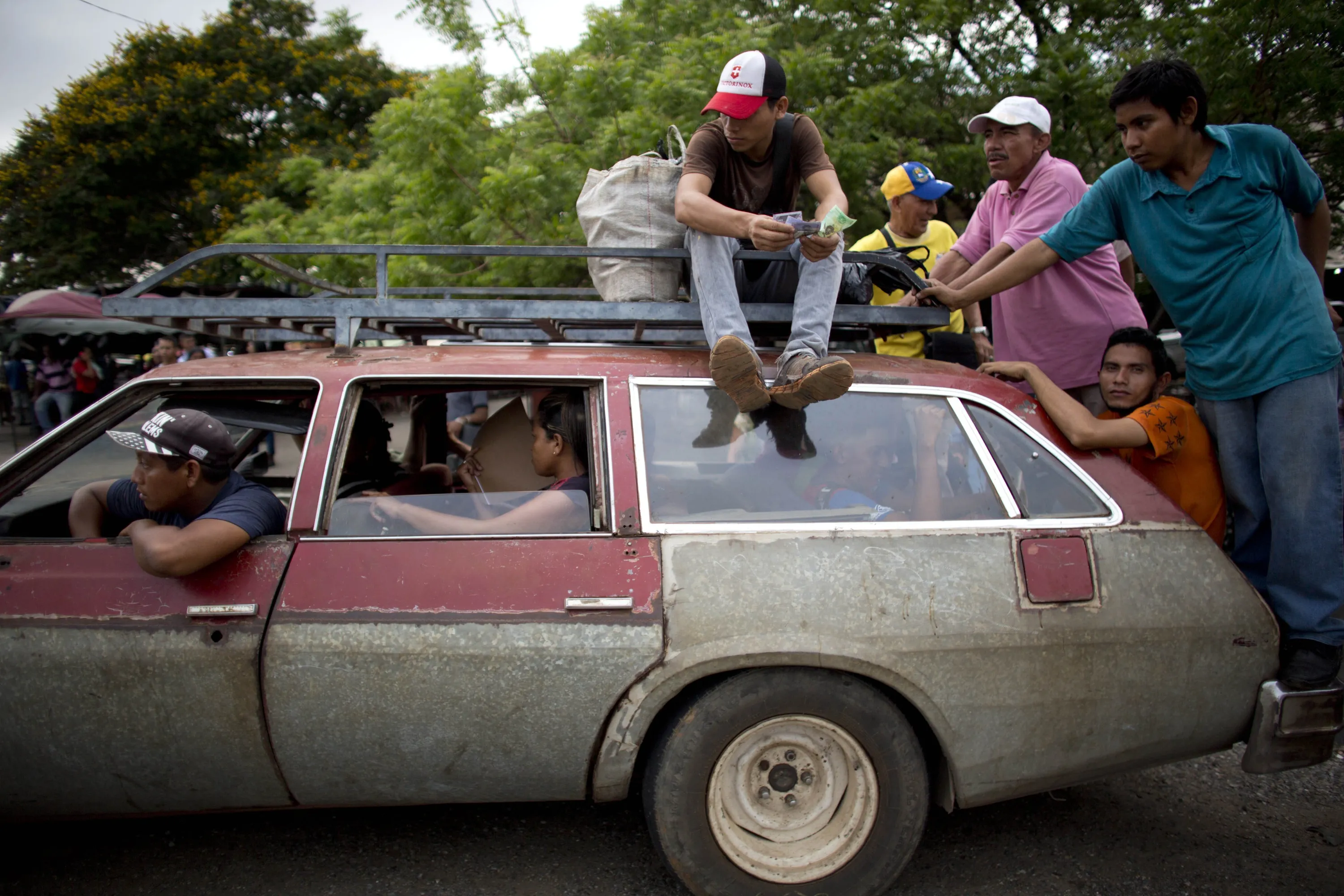 In this April 17, 2018 photo, commuters are transported in a used station wagon in downtown Maracaibo, Venezuela. Power shortages are adding to the misery of an economic collapse on the scale of the Great Depression of the 1930s. (Photo by Ariana Cubillos/AP Photo)