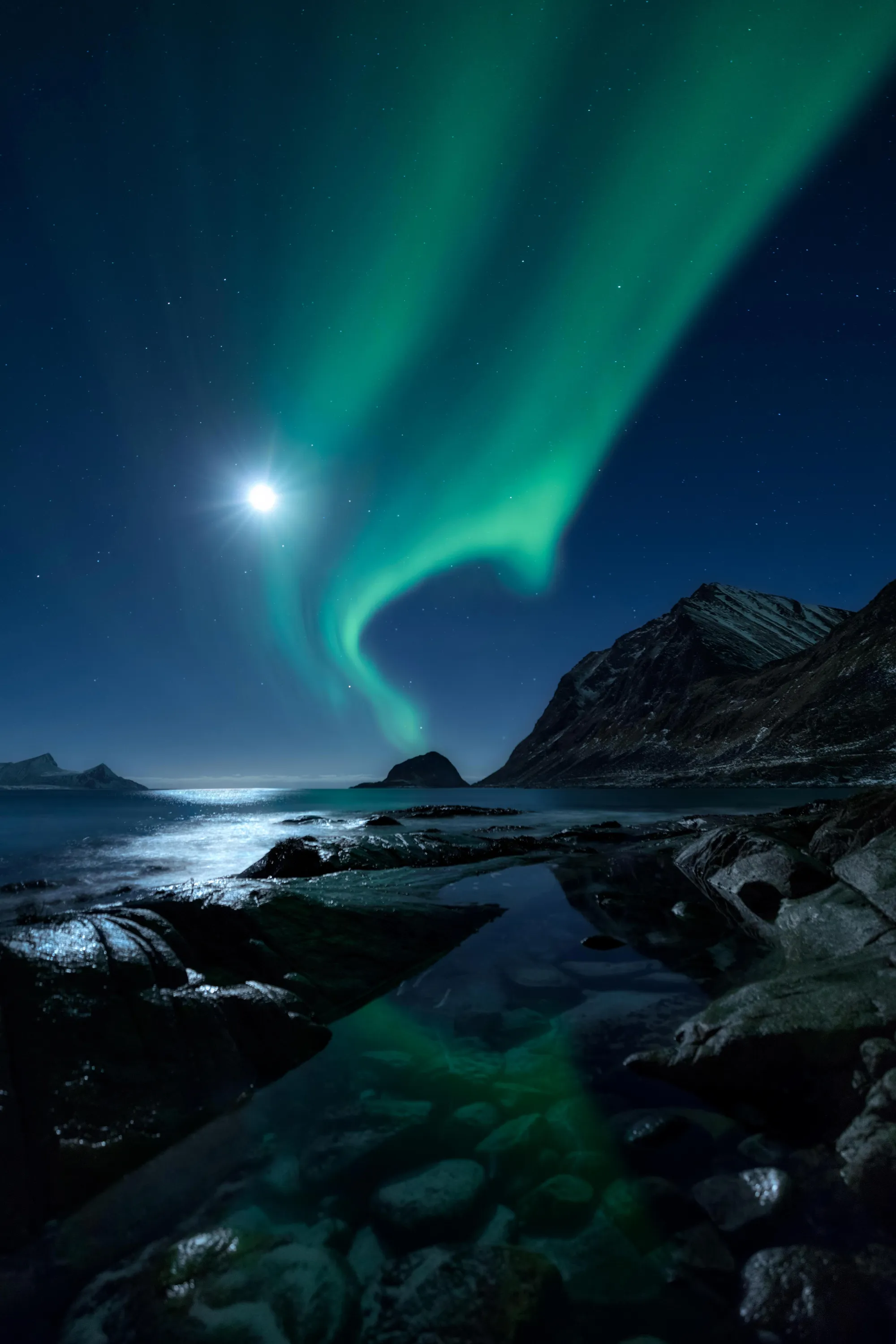 Aurora Borealis above the fjord at Haukland in the gorgeous Lofoten archipelago, Northern Norway. (Photo by Mikkel Beiter/Astronomy Photographer of the Year 2018)