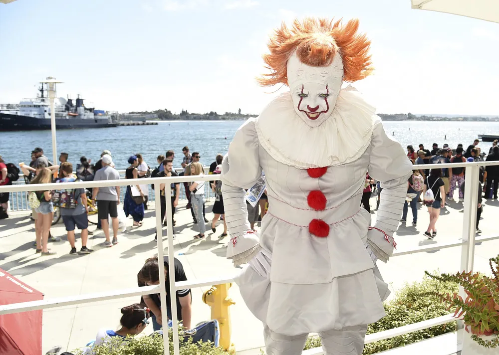 Juliana Bove, of San Diego, dressed as Pennywise from the film “It”, attends day two of Comic-Con International on Friday, July 20, 2018, in San Diego. (Photo by Richard Shotwell/Invision/AP Photo)
