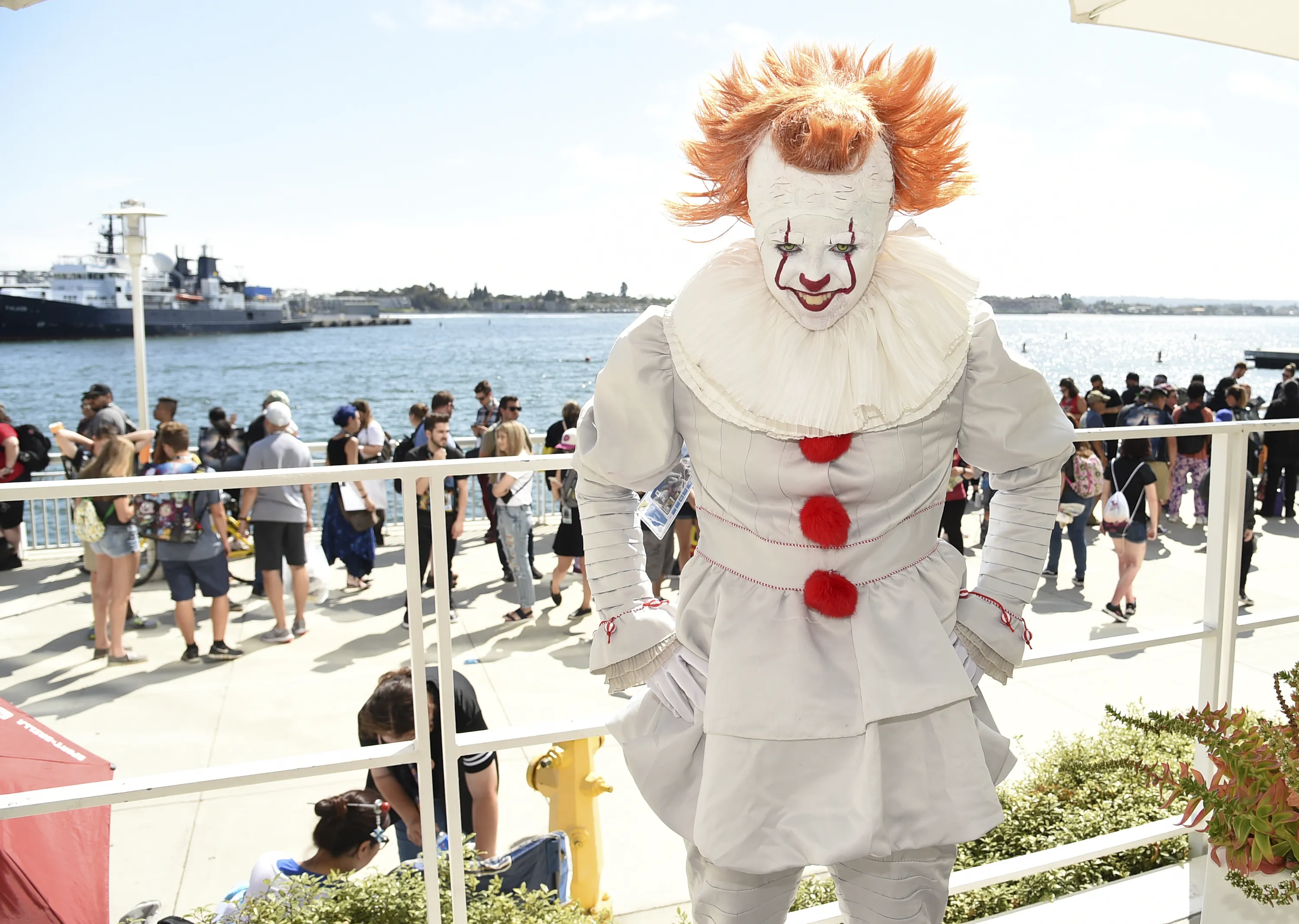 Juliana Bove, of San Diego, dressed as Pennywise from the film “It”, attends day two of Comic-Con International on Friday, July 20, 2018, in San Diego. (Photo by Richard Shotwell/Invision/AP Photo)