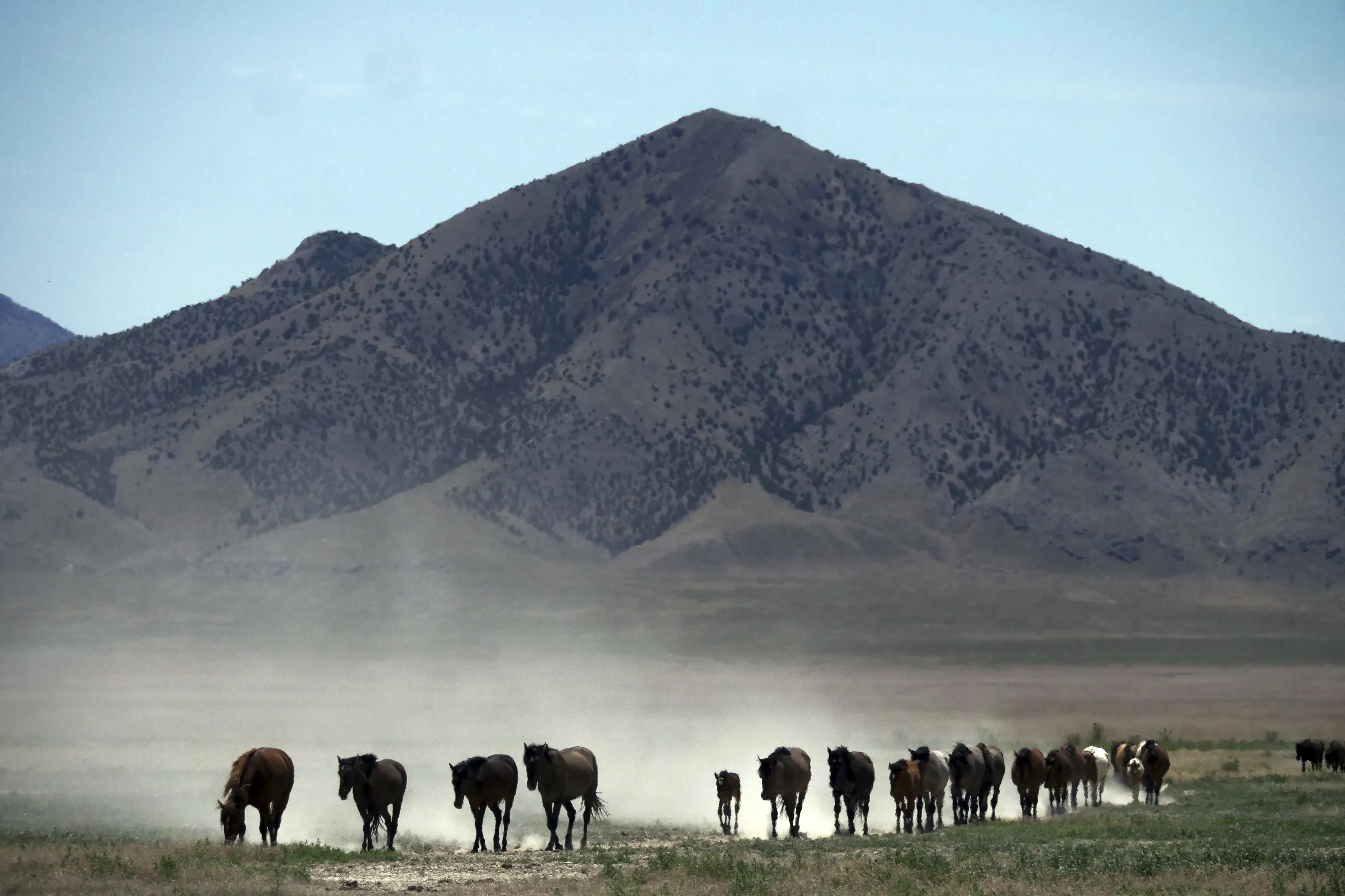In this June 29, 2018 photo, wild horses walk to a watering hole outside Salt Lake City. Harsh drought conditions in parts of the American West are pushing wild horses to the brink and forcing extreme measures to protect them. Federal land managers have begun emergency roundups in the deserts of western Utah and central Nevada. (Photo by Rick Bowmer/AP Photo)