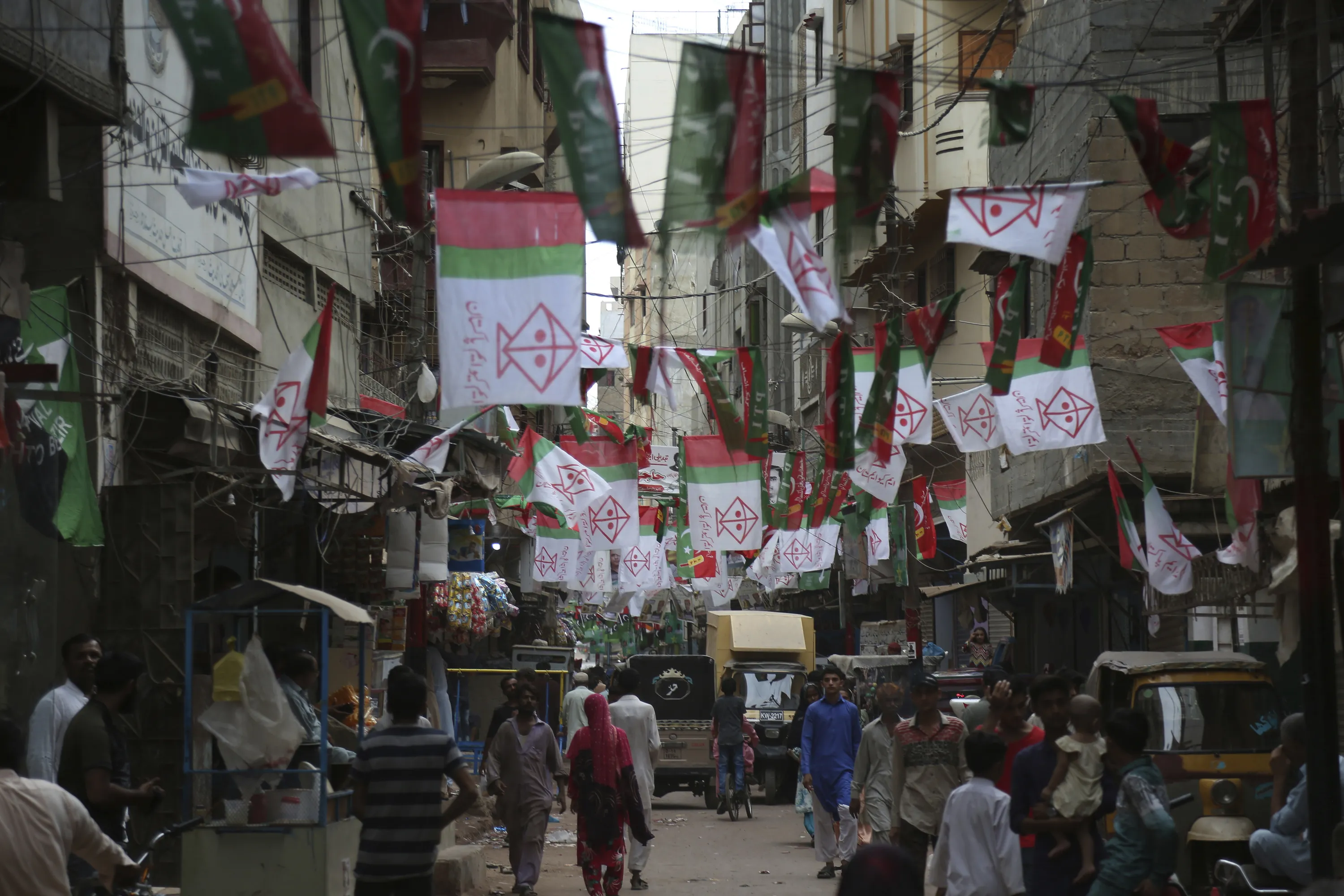 A street is decorated with posters of election candidates in Karachi, Pakistan, Tuesday, July 10, 2018. Pakistan's military announced on Tuesday that it would deploy more than 371,000 members of the country's security forces to polling stations to ensure free, fair and transparent national elections on July 25. (Photo by Shakil Adil/AP Photo)