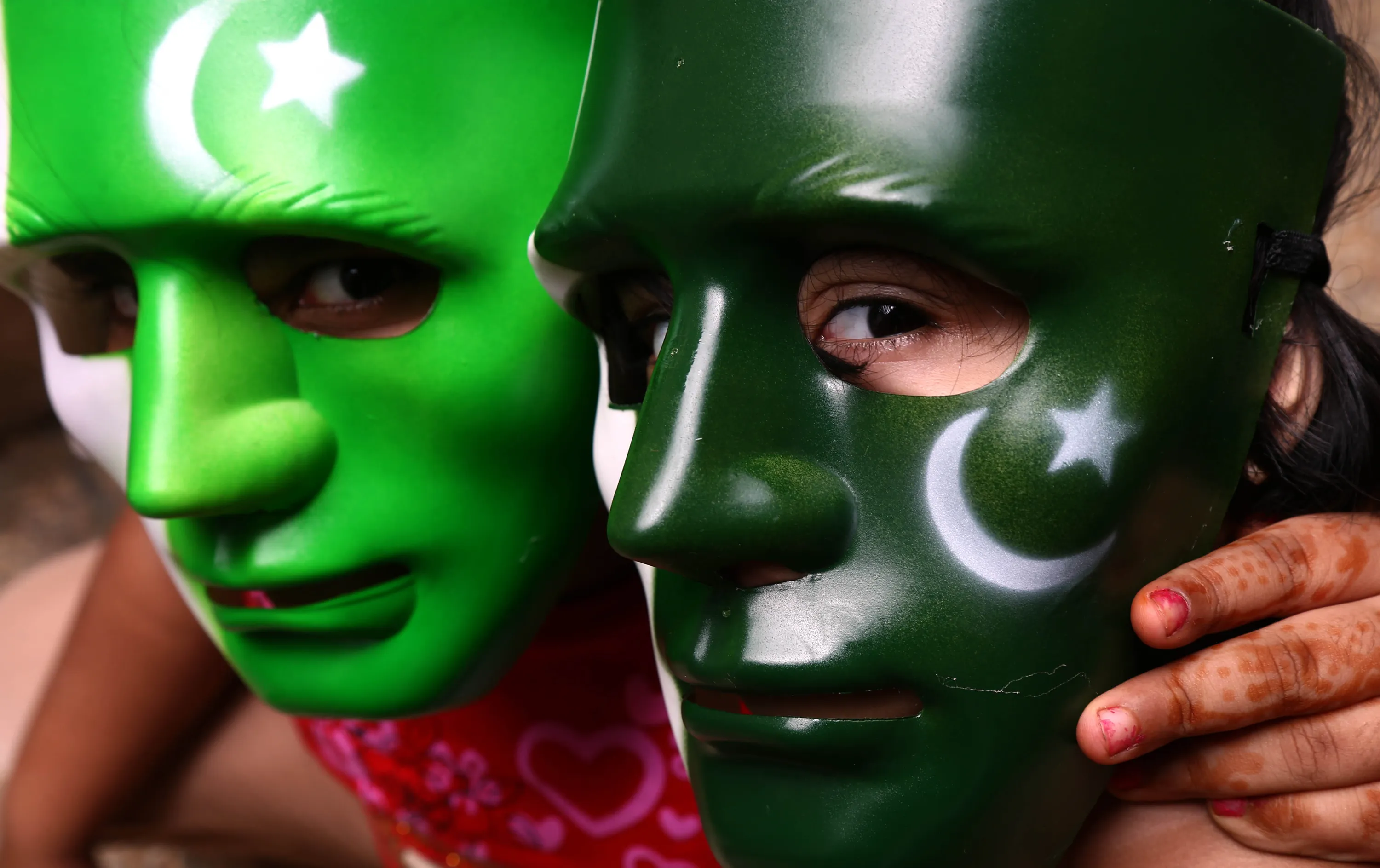 Pakistani boys wear masks in colors of national flag as the nation prepares to celebrate Independence Day, in Karachi, Pakistan, 07 August 2017. Pakistan celebrates its 70th independence anniversary from British rule in 1947, on 14 August 2017. (Photo by Rehan Khan/EPA/EFE)